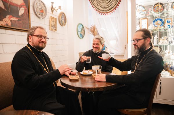 Вечером отец Владислав Береговой встретился с православной молодежью Йошкар-Олы, пообщавшись с молодыми людьми в неформальной обстановке на «Пельменнике» в трапезной храма иконы Божией Матери «Всех скорбящих Радость».