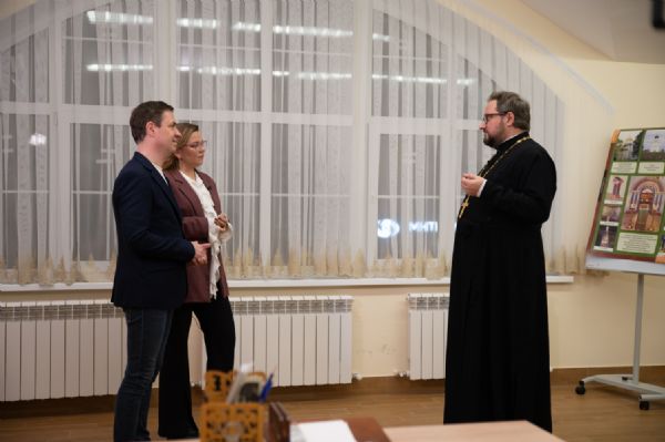 Далее гость в сопровождении священнослужителей епархии прогулялся по набережной реки Малая Кокшага, полюбовавшись храмовой архитектурой, а в воскресной школе Воскресенского собора его уже ждала съемочная группа программы «Утро на МЭТРе».
