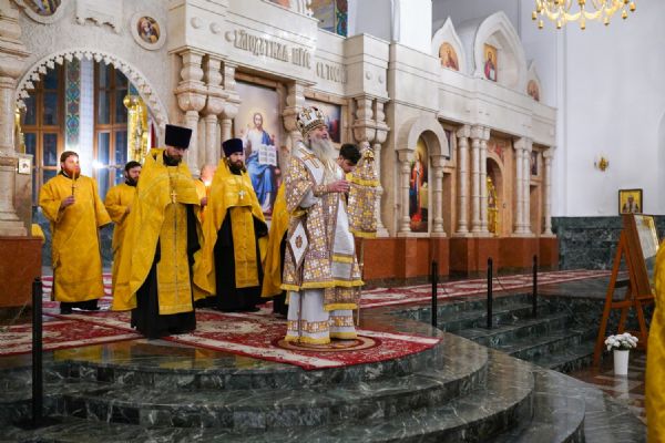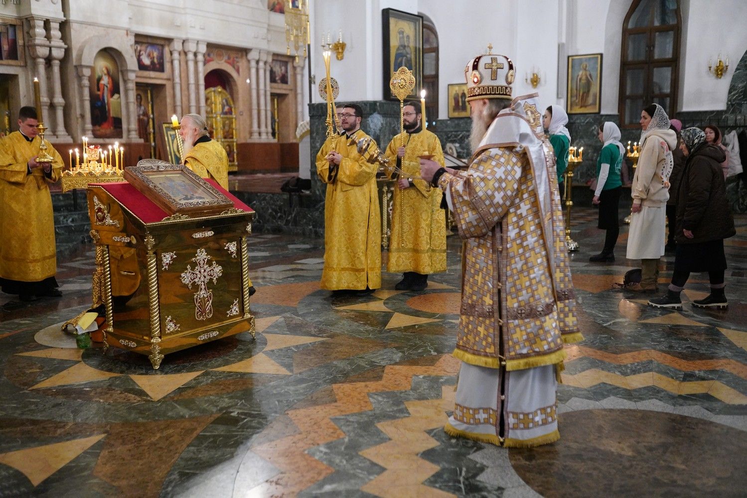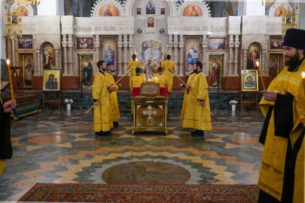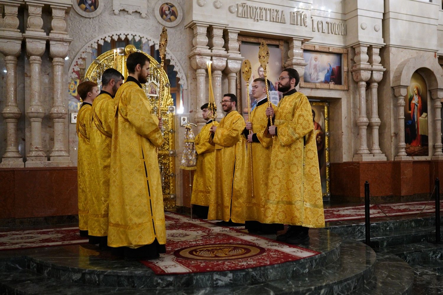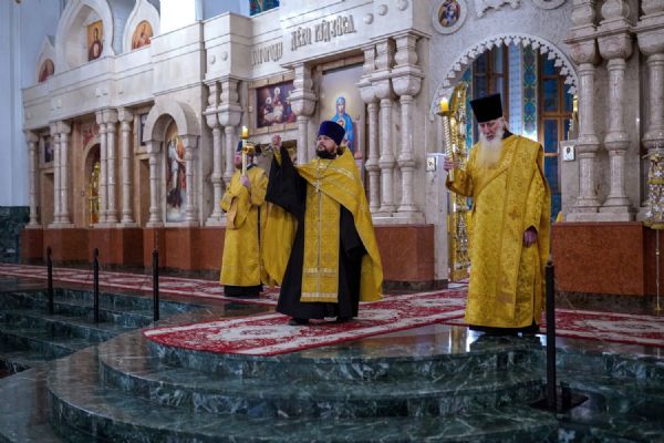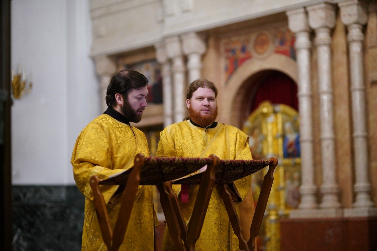 Владыке сослужили клирики собора иереи Никифор Захаров, Евгений Самойлов, Иоанн Милютин, диаконы Андрей Дружинин и Артемий Бобоч, а также протодиакон Михаил Козловский. Песнопения исполнял младший состав архиерейского детско-юношеского хора «Благовест» под управлением регента Надежды Поздеевой.