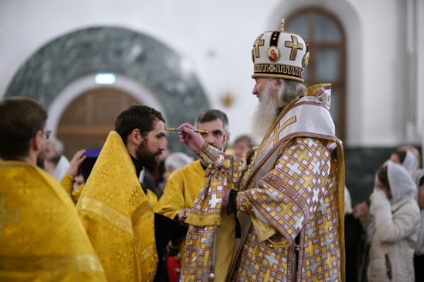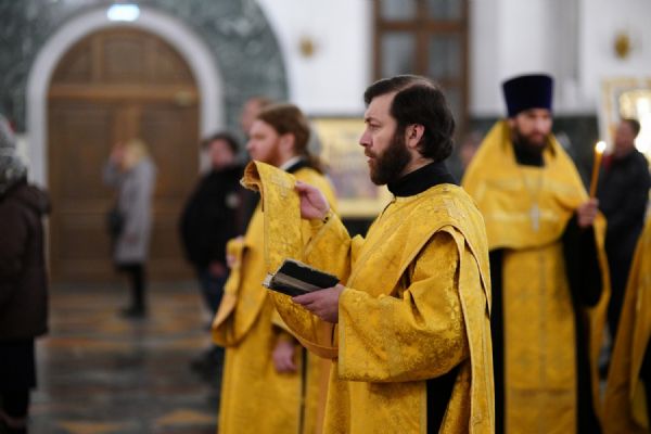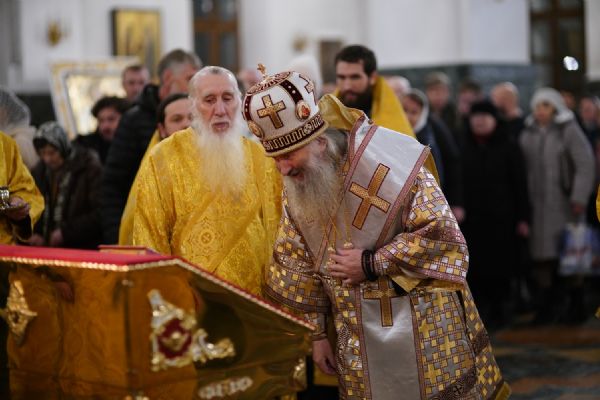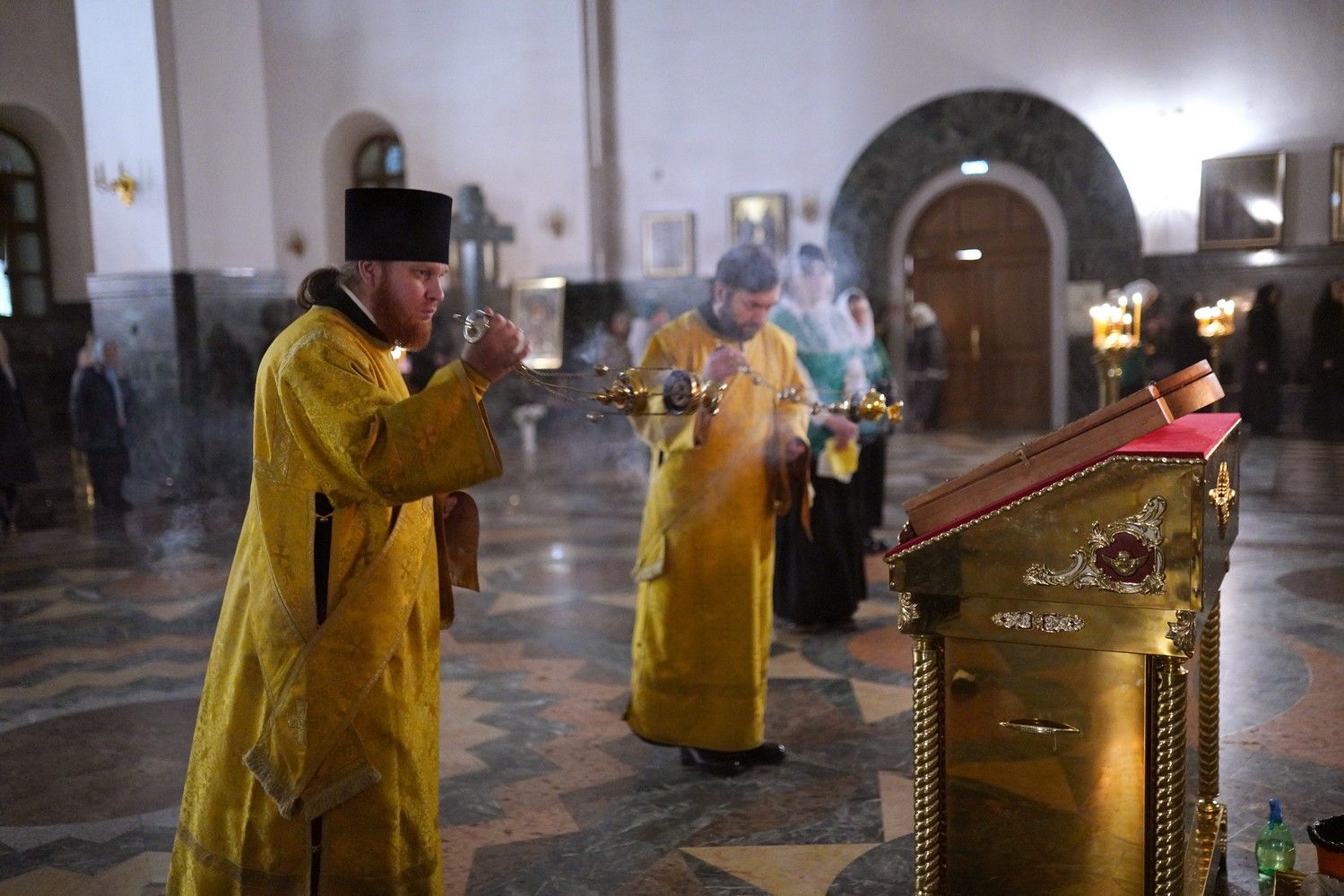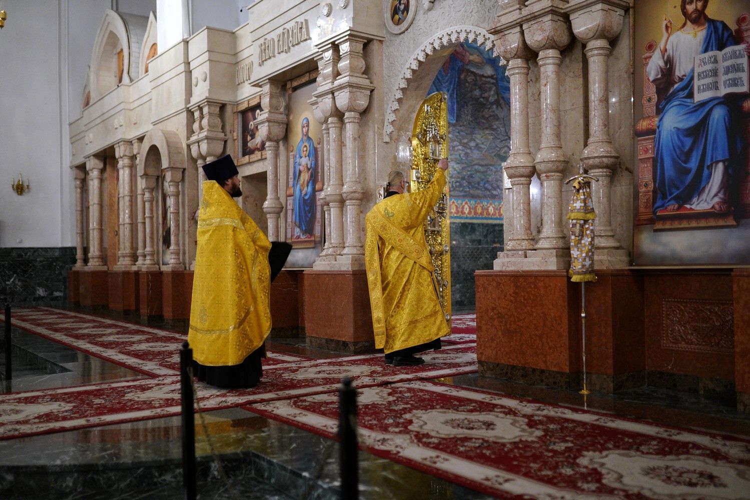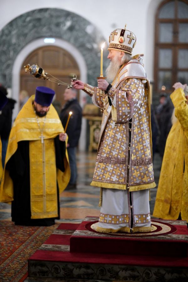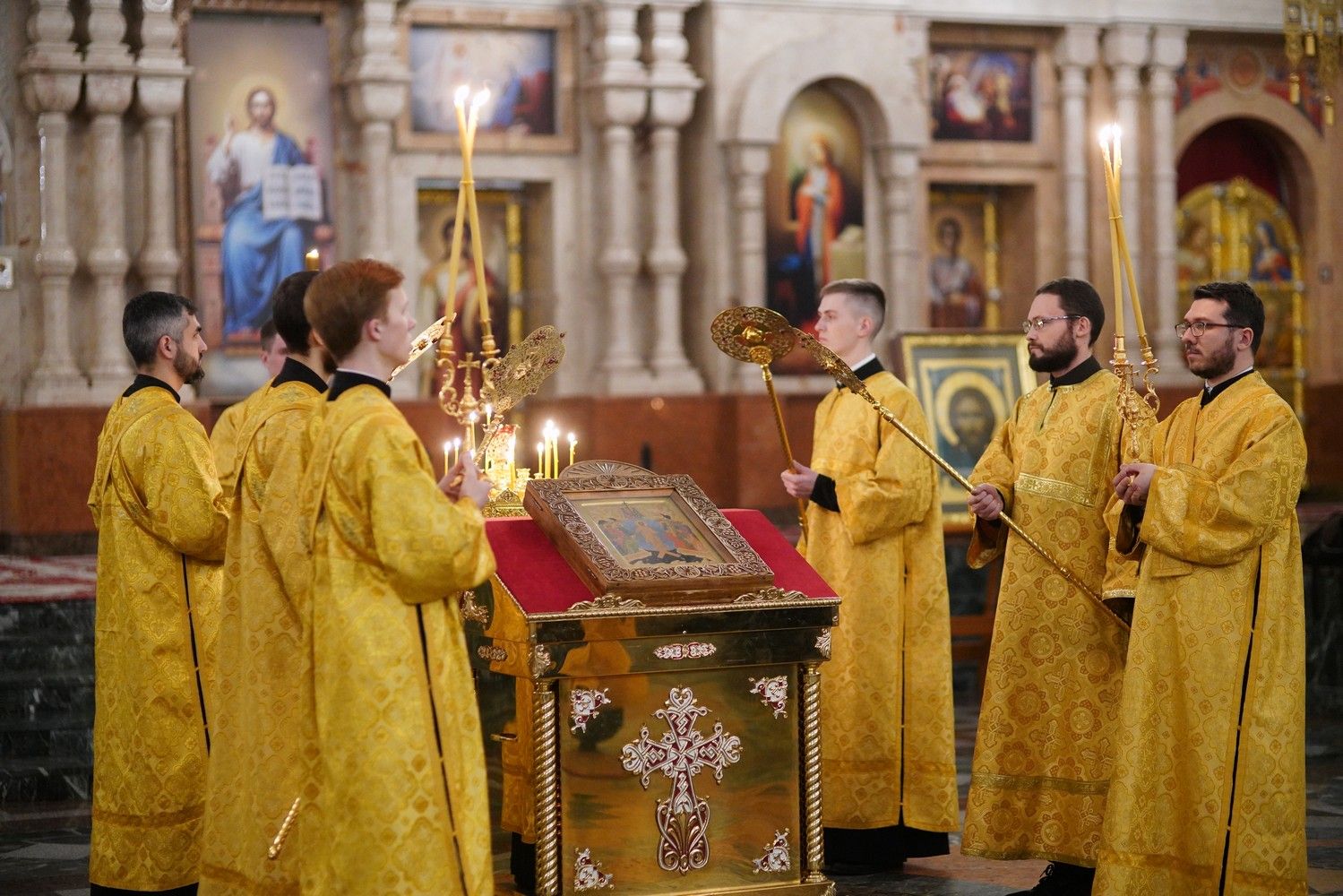 Владыке сослужили клирики собора иереи Никифор Захаров, Евгений Самойлов, Иоанн Милютин, диаконы Андрей Дружинин и Артемий Бобоч, а также протодиакон Михаил Козловский. Песнопения исполнял младший состав архиерейского детско-юношеского хора «Благовест» под управлением регента Надежды Поздеевой.
