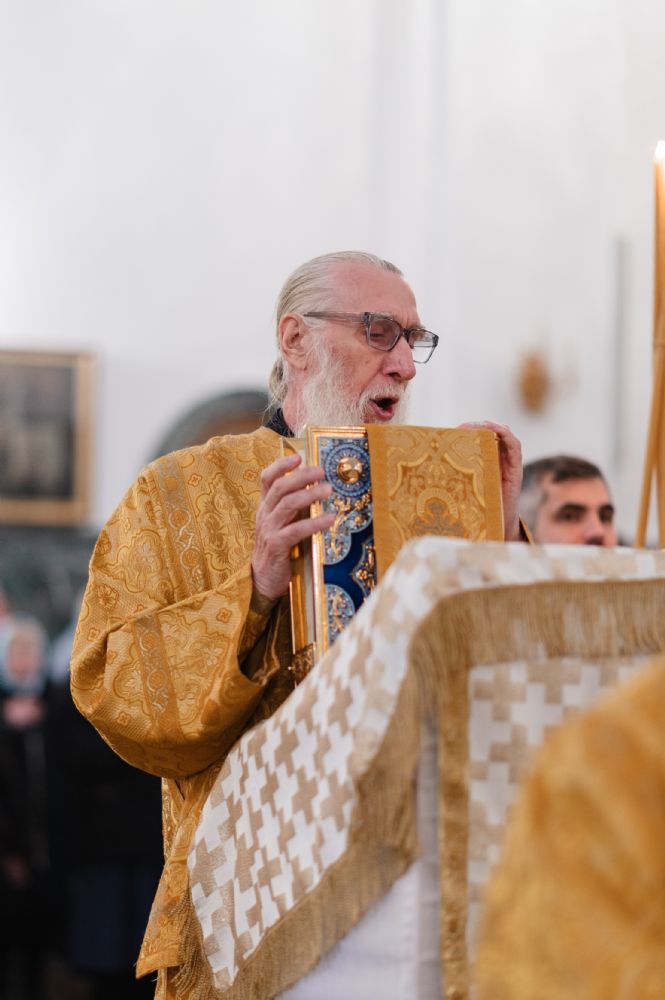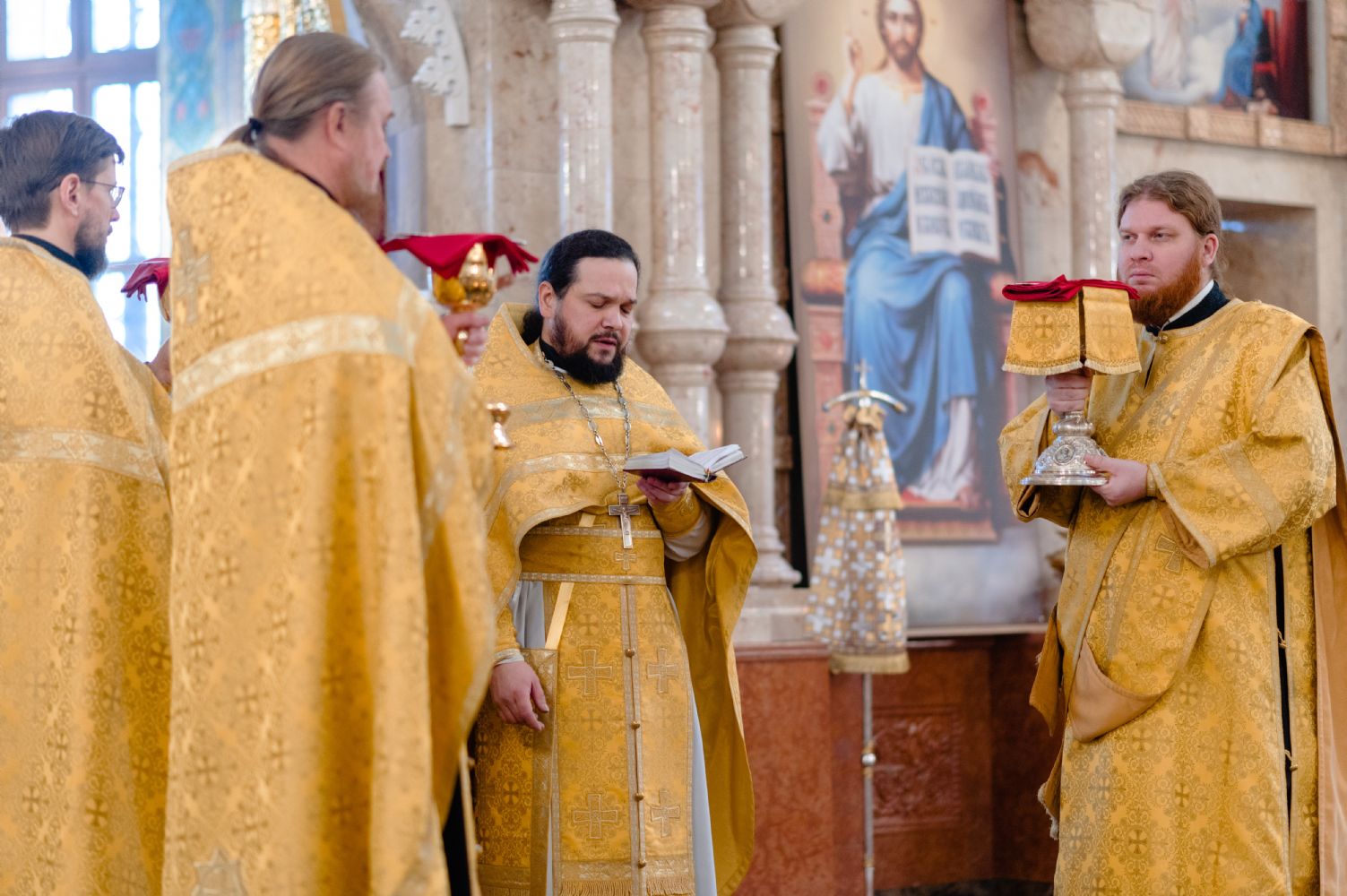 Владыке сослужили клирики собора иерей Никифор Захаров, диаконы Андрей Дружинин и Артемий Бобоч, а также протодиакон Михаил Козловский. Песнопения исполняли старший и младший составы архиерейского детско-юношеского хора «Благовест» под управлением регентов Татьяны Черновой и Надежды Поздеевой. Исповедь у многочисленных прихожан принимали протоиерей Сергий Поглазов и иерей Евгений Самойлов.