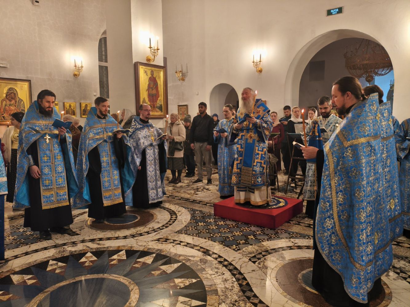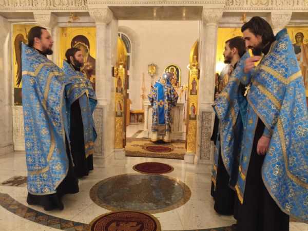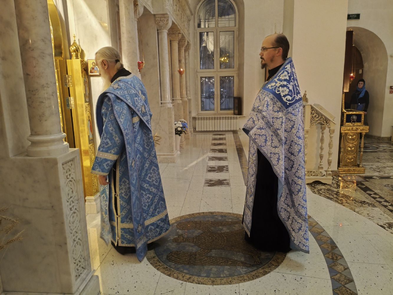Владыке сослужили настоятель храма иерей Алексий Михеев, клирики храма иереи Алексий Кирюшкин, Игорь Коваль, Сергий Пуртов и Василий Пряморуков, а также протодиакон Михаил Козловский. Песнопения исполнял хор храма под управлением Александры Ивановой.
