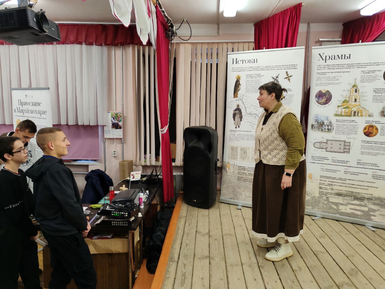 11 декабря научные сотрудники Музея истории Православия г. Йошкар-Олы Светлана Каплунова и Анна Щеголева посетили Великопольскую среднюю школу Оршанского района.