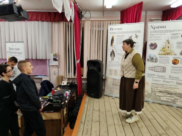Сотрудники музея провели экскурсию по выставке, увлекательно и интересно рассказав об истории православия в нашей республике. А затем предложили ребятам познавательную командную игру – путешествие сквозь время, где герои – люди, а сюжеты – значимые исторические события, связанные с землями, входящими ныне в состав Республики Марий Эл.