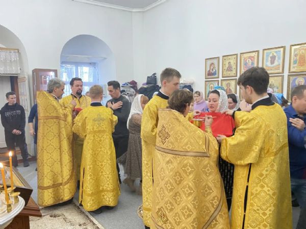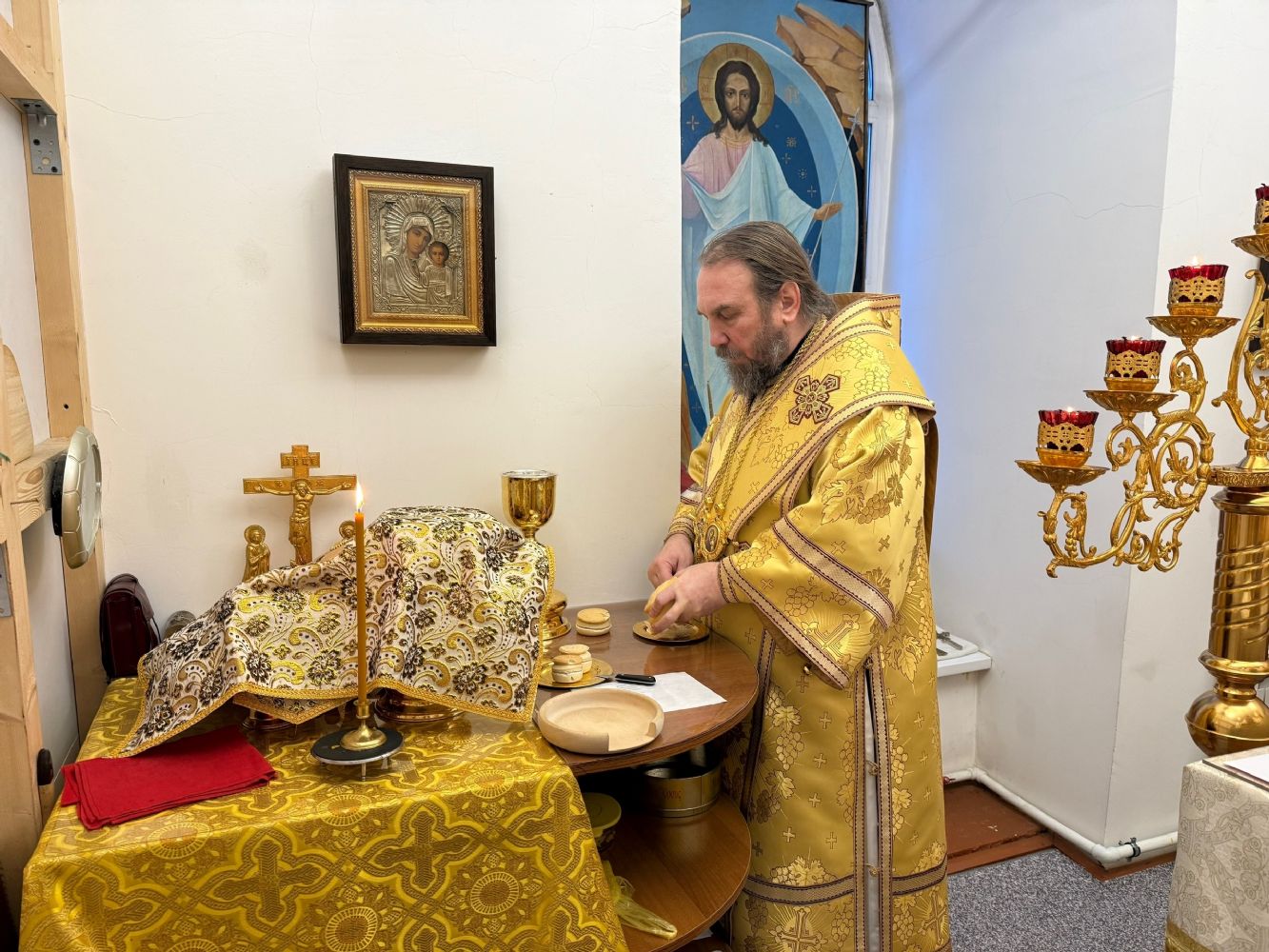 Его Преосвященству сослужили настоятель храма иерей Олег Михайлов, настоятель храма Рождества Христова г. Йошкар-Олы иерей Александр Лоскутов, клирик Успенского храма г. Йошкар-Олы иерей Никита Иванов и клирик Воскресенского собора г. Йошкар-Олы диакон Алексий Кузнецов.