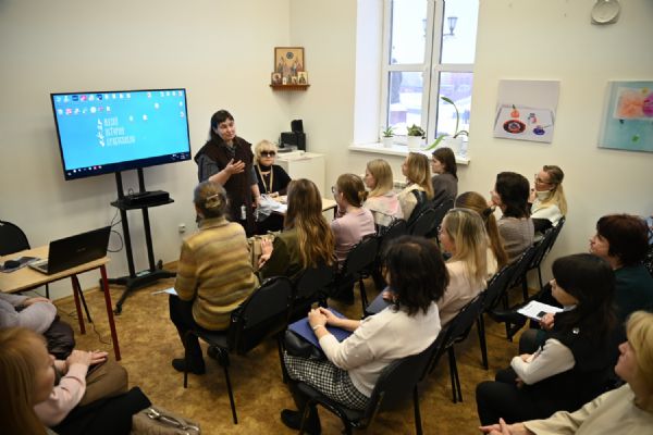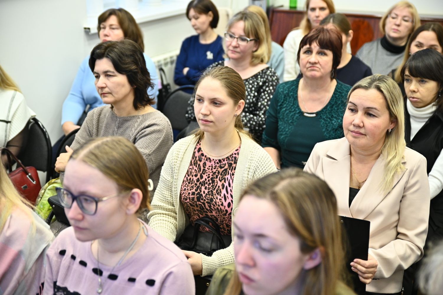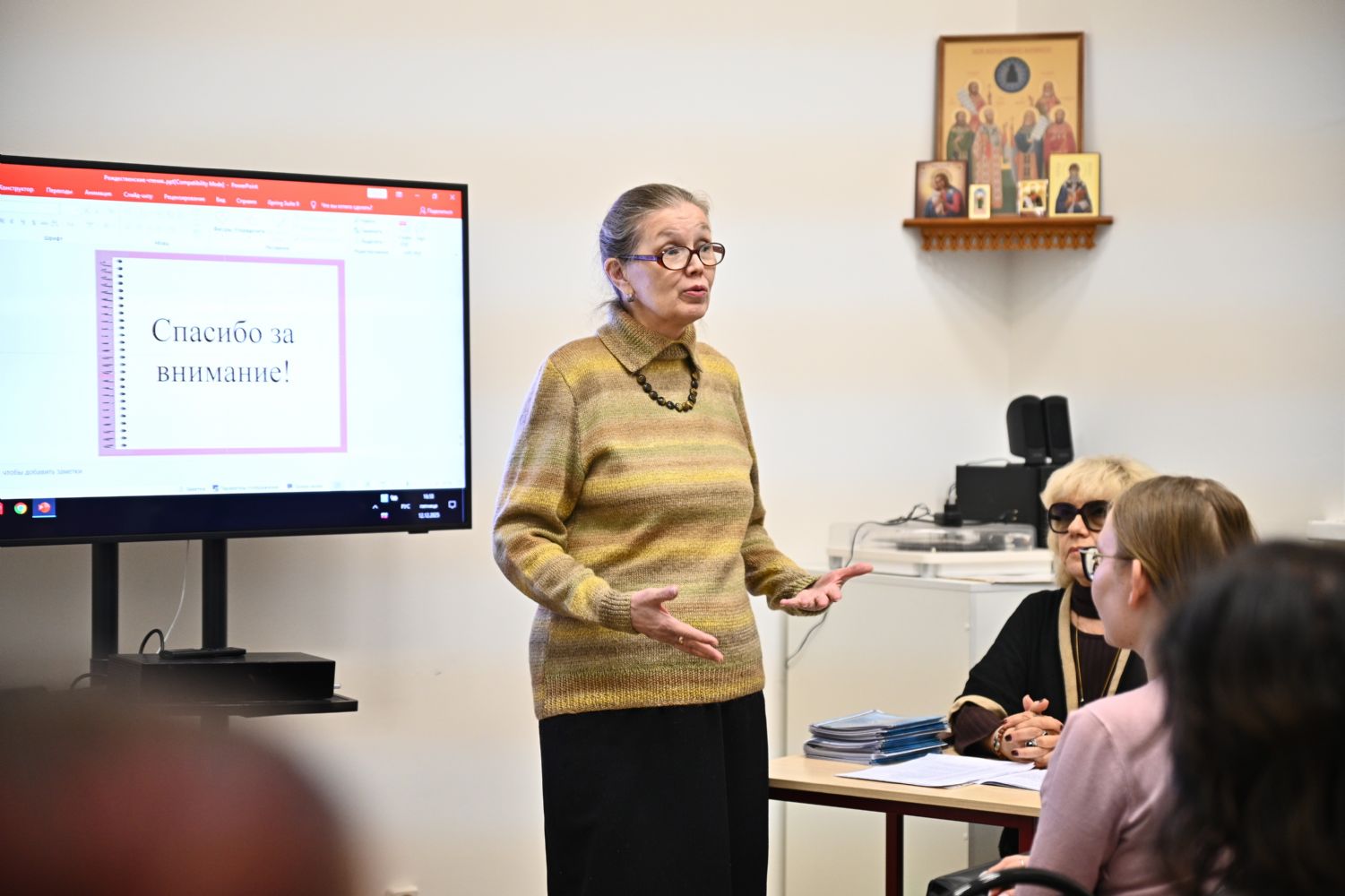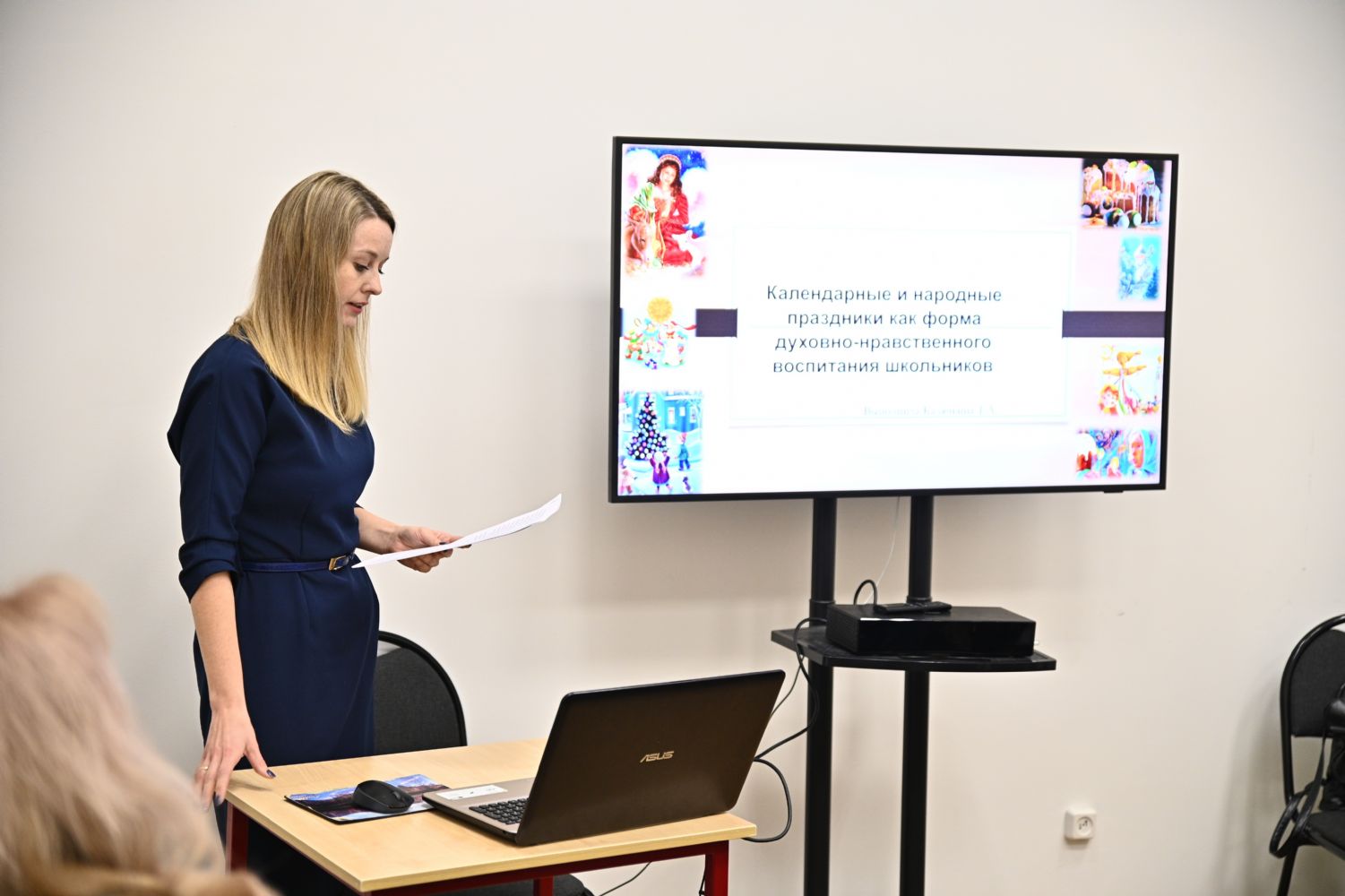 Во второй половине семинара учителя познакомили коллег со своими методическими наработками в области духовно-нравственного воспитания школьников. Темы были самые разные: «Процесс изучения истории Родины, формирование сопричастности детей и молодежи к историческим событиям (из опыта проведения городского конкурса «Служение Отечеству: события, имена»); «Роль школьного музея и школьной библиотеки в системе культурного развития и духовно-нравственного воспитания обучающихся»; «Связь духовно-нравственного воспитания в школе с национальными ценностями»; «Календарные и народные праздники как одна из форм духовно-нравственного воспитания»; «Формирование патриотических качеств младшего школьника в урочной и внеурочной деятельности».