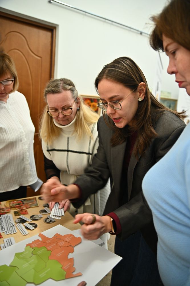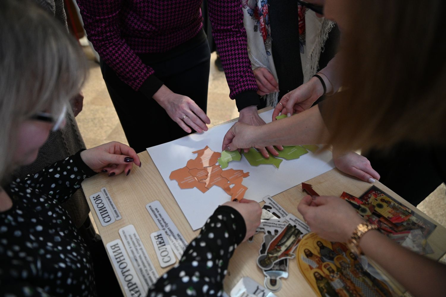 Сотрудник Музея Светлана Константиновна Каплунова представила участникам семинара передвижную выставку, посвящённую 30-летию Йошкар-Олинской епархии, а также провела для учителей программу «Путь к Свету» – педагоги с азартом разгадывали задания: собирали карту Марийской митрополии, разбирались в церковных терминах и выстраивали хронологию событий.