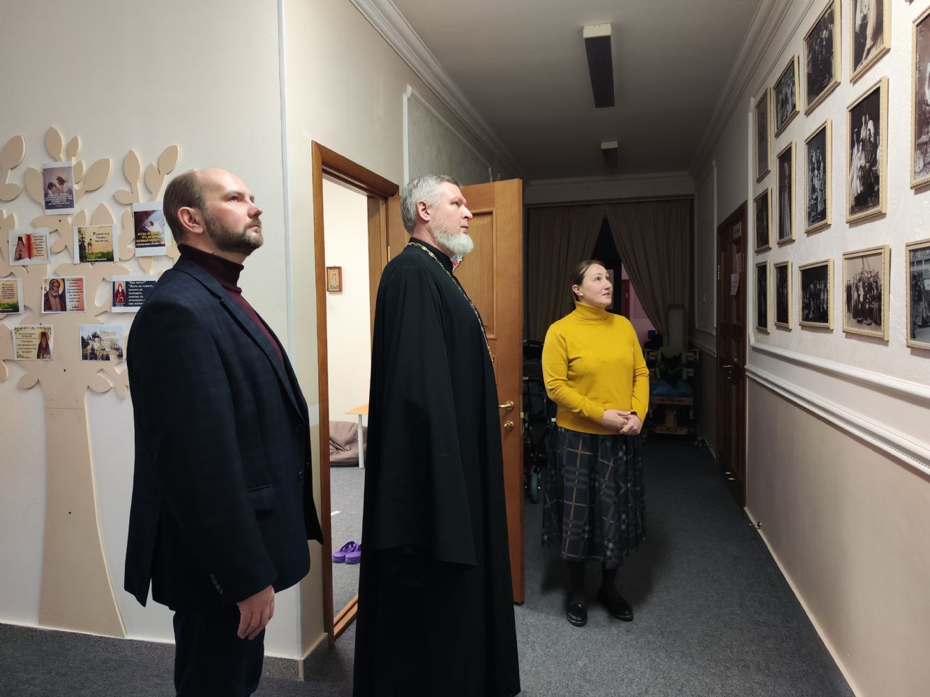 Гостей встретил пресс-секретарь Йошкар-Олинской епархии Сергей Скорик – он провел для них экскурсию по зданию Православного центра. Волжане с интересом осмотрели домовый храм в честь преподобномученицы великой княгини Елисаветы, реабилитационный центр для детей с ОВЗ «Добрые зернышки», Царевококшайскую иконописную мастерскую, ознакомились с прочими епархиальными службами, расположенными в Православном центре.