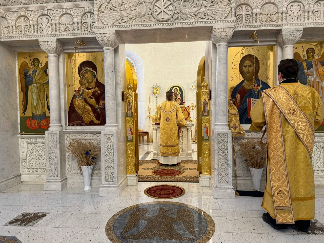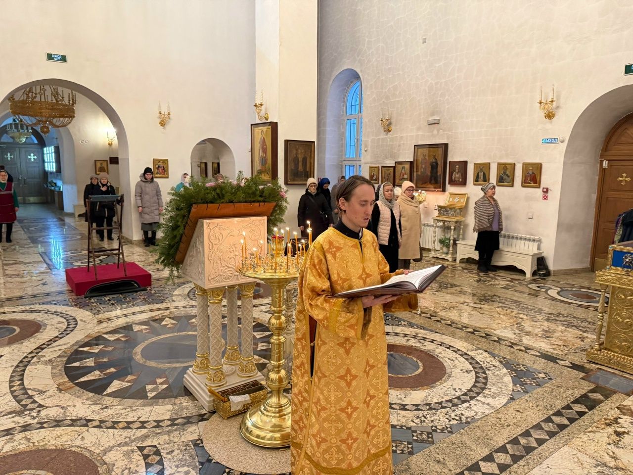 Его Преосвященству сослужили настоятель храма иерей Алексий Михеев, клирики храма иереи Игорь Коваль, Сергий Пуртов и Василий Пряморуков, а также клирик Воскресенского собора Йошкар-Олы диакон Алексий Кузнецов. Песнопения исполнял хор храма под управлением Александры Ивановой.