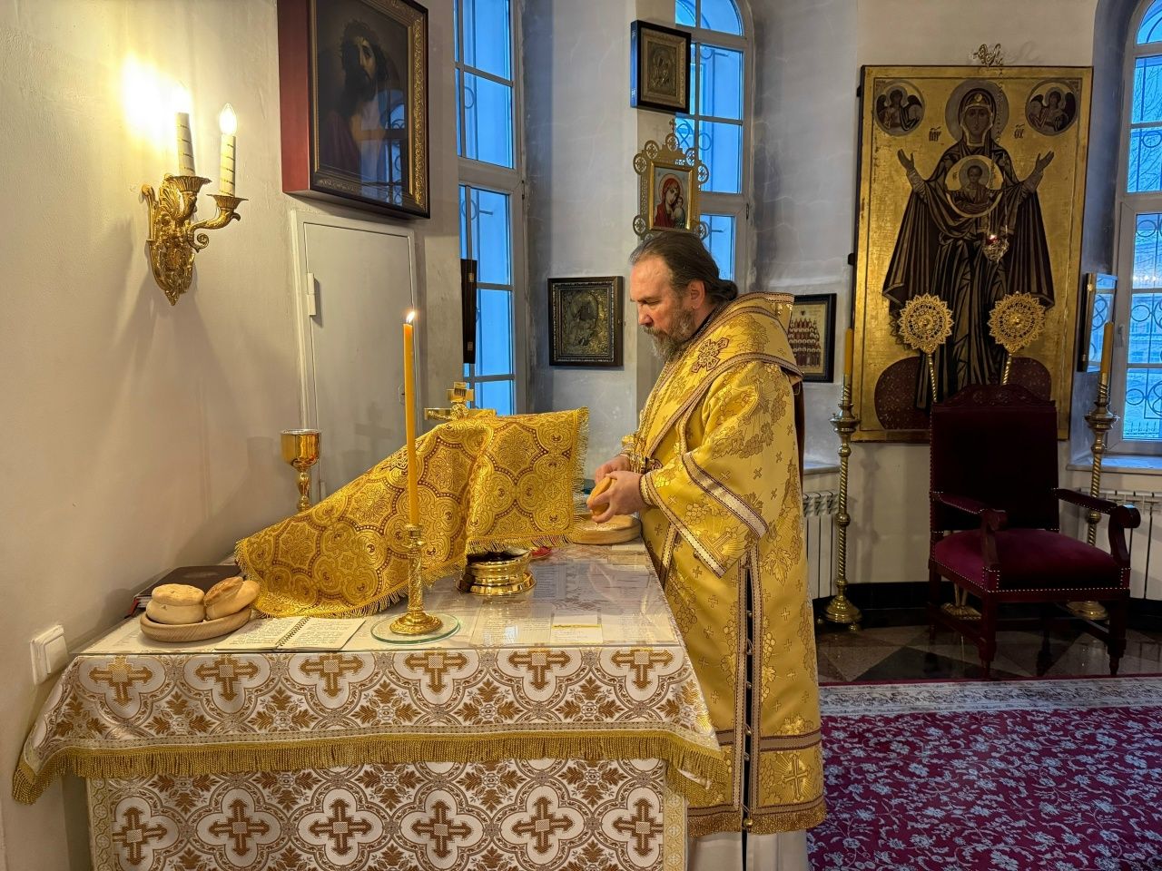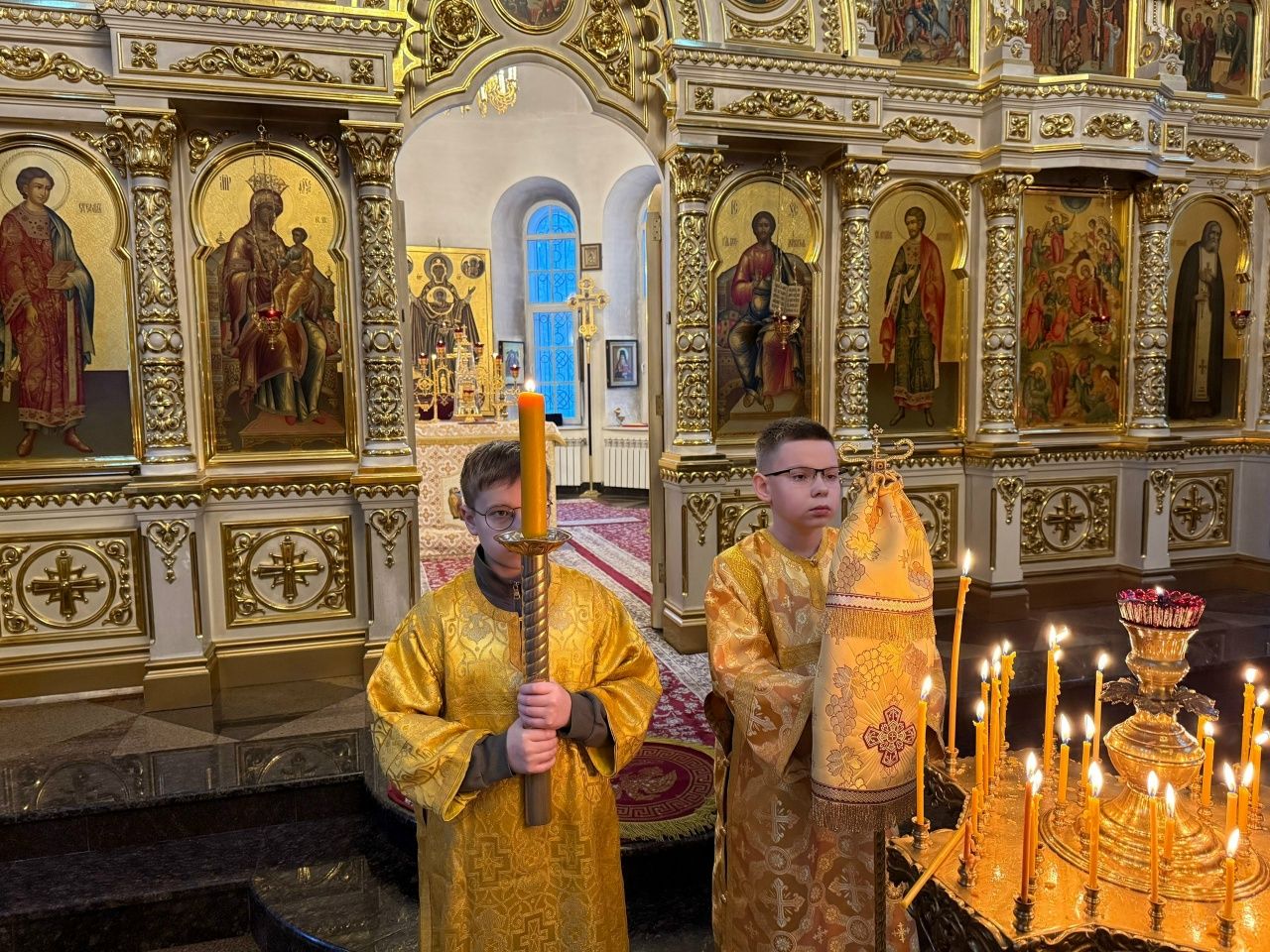 Его Преосвященству сослужили настоятель храма иерей Алекандр Лоскутов, клирик храма диакон Даниил Зорин, а также клирик Благовещенского кафедрального собора Йошкар-Олы диакон Артемий Бобоч. Песнопения исполнял хор храма под управлением Наталии Поповой.