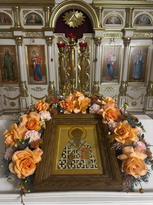 25 декабря Православная Церковь отмечает день памяти святителя Спиридона, епископа Тримифунтского, чудотворца. На богослужение в Сретенский храм был принесен ковчег с частицей мощей святителя Спиридона, прихожане нарядно украсили храм и икону святителя гирляндами из живых цветов.