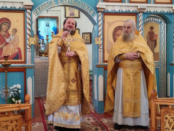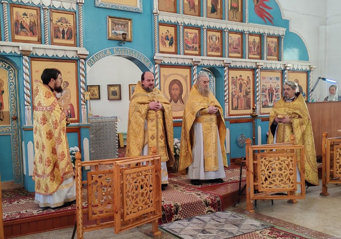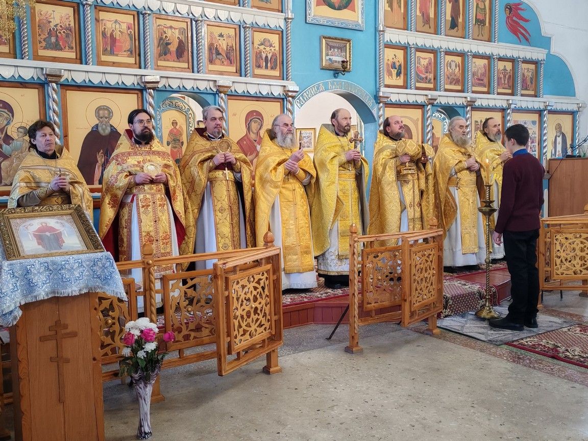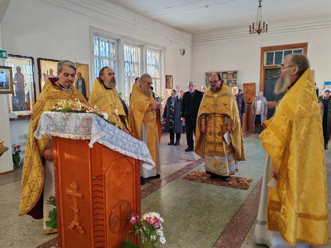 Богослужение возглавил благочинный Пригородного церковного округа протоиерей Николай Ярошевич, ему сослужили настоятель храма протоиерей Валентин Пылаев, настоятель Покровского храма с. Мари-Сола протоиерей Сергий Сильдюшкин, настоятель храма Казанской иконы Божией Матери с. Нурма иерей Александр Коваль, настоятель храма Рождества Христова г. Йошкар-Олы иерей Александр Лоскутов, клирик Мироносицкого женского монастыря с. Ежово иерей Михаил Лежнин, клирик храма Рождества Христова г. Йошкар-Олы иерей Евгений Симаков, настоятель Богоявленского храма с. Великополье иерей Олег Михайлов.