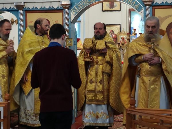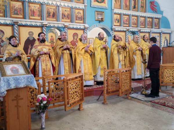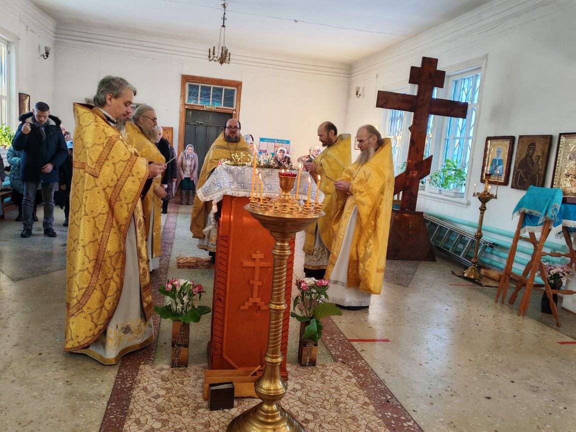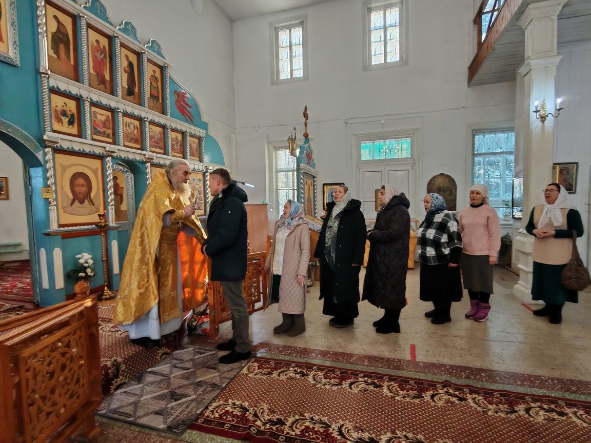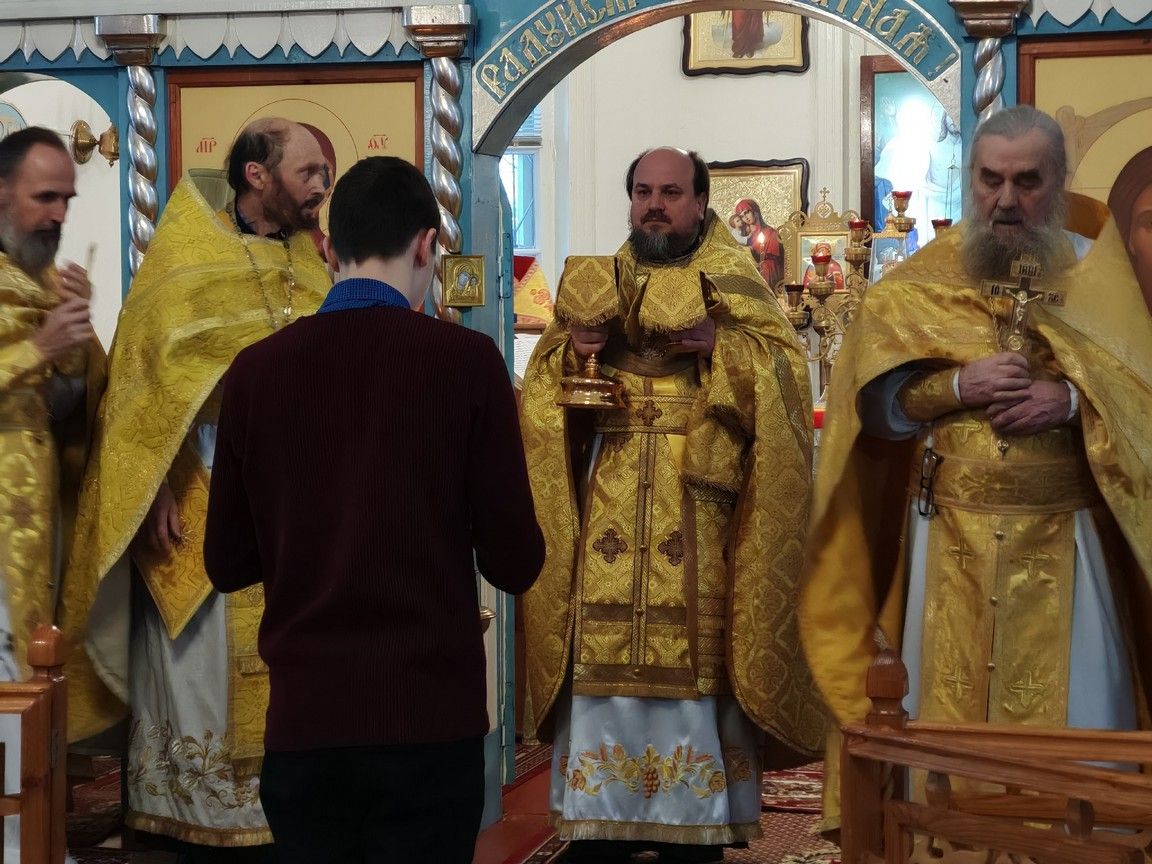 Богослужение возглавил благочинный Пригородного церковного округа протоиерей Николай Ярошевич, ему сослужили настоятель храма протоиерей Валентин Пылаев, настоятель Покровского храма с. Мари-Сола протоиерей Сергий Сильдюшкин, настоятель храма Казанской иконы Божией Матери с. Нурма иерей Александр Коваль, настоятель храма Рождества Христова г. Йошкар-Олы иерей Александр Лоскутов, клирик Мироносицкого женского монастыря с. Ежово иерей Михаил Лежнин, клирик храма Рождества Христова г. Йошкар-Олы иерей Евгений Симаков, настоятель Богоявленского храма с. Великополье иерей Олег Михайлов.