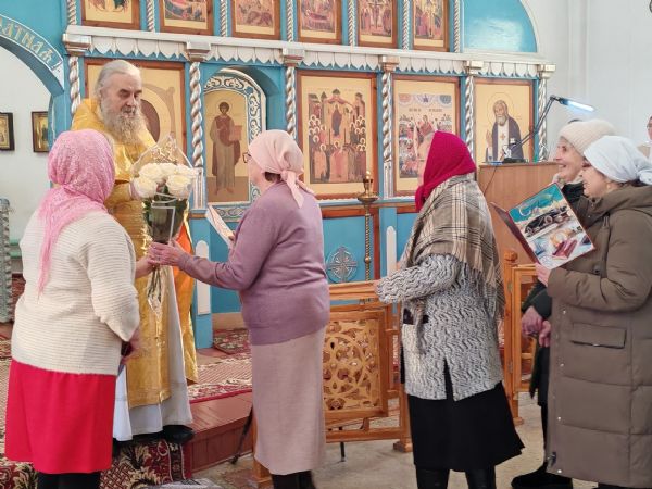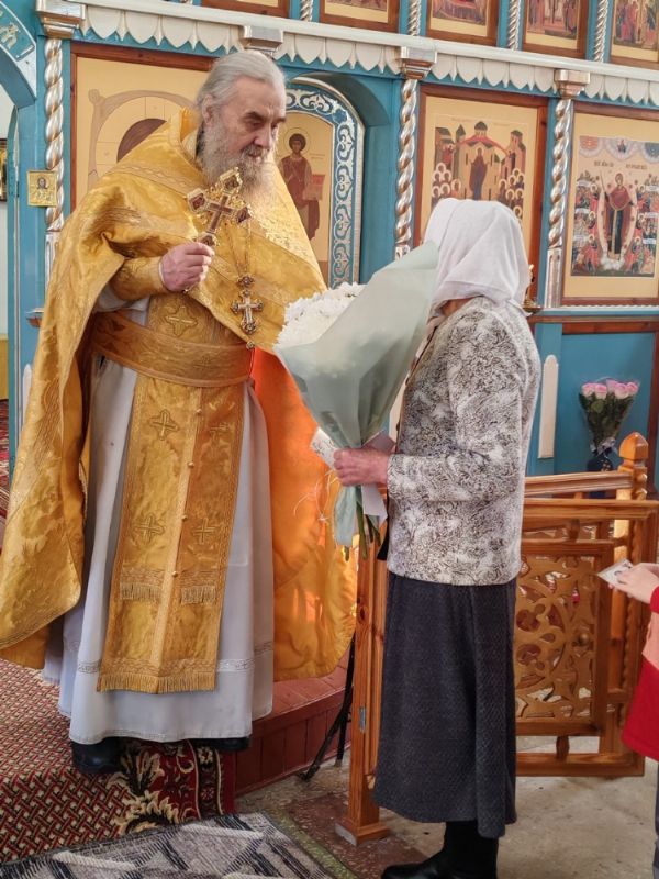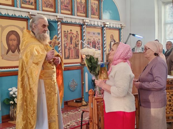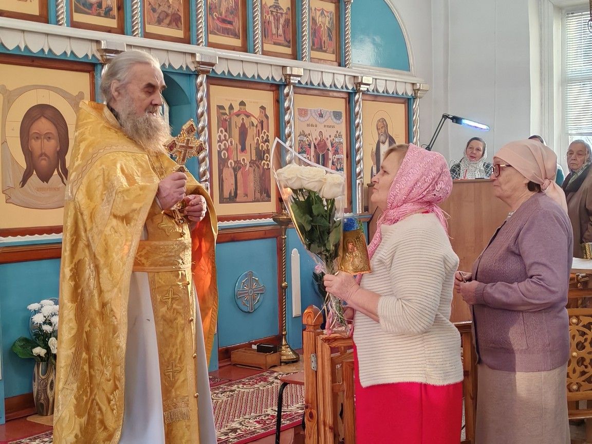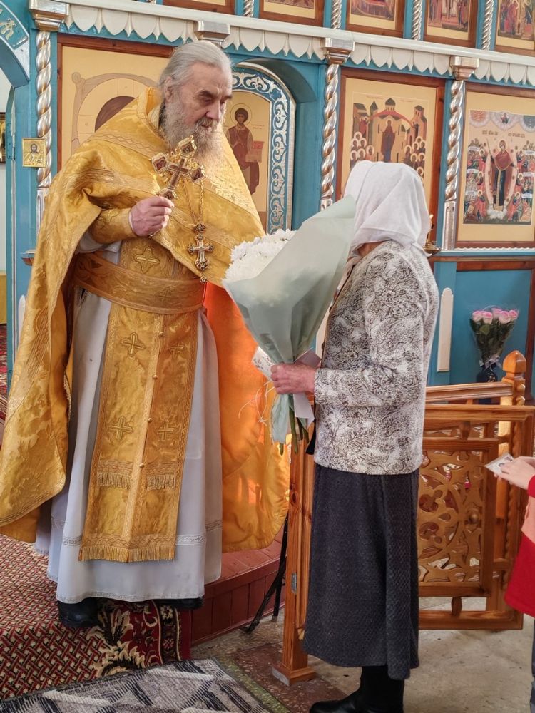 По окончании Литургии протоиерей Николай Ярошевич тепло поздравил отца Валентина с юбилеем и вручил ему на молитвенную память напрестольный крест.