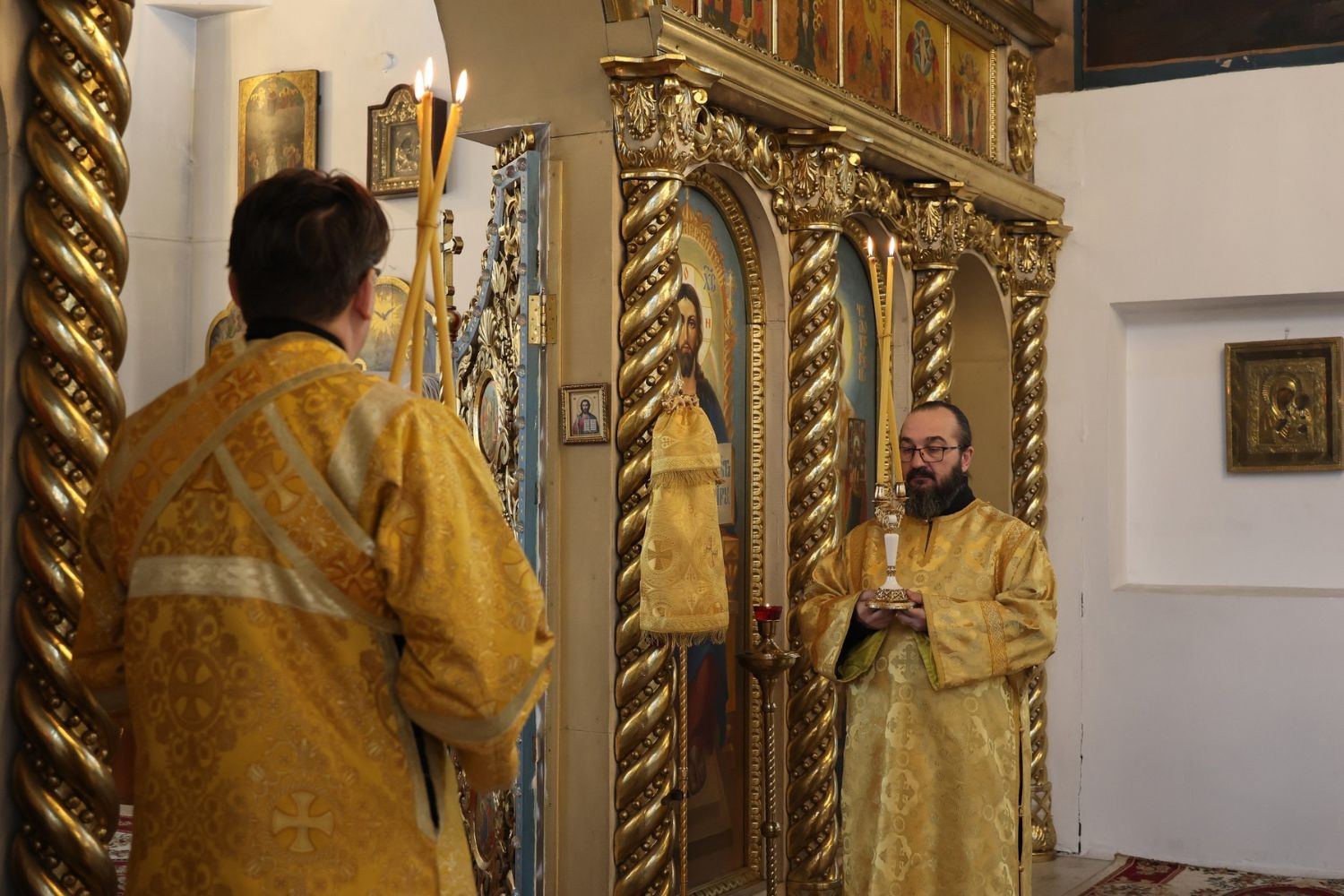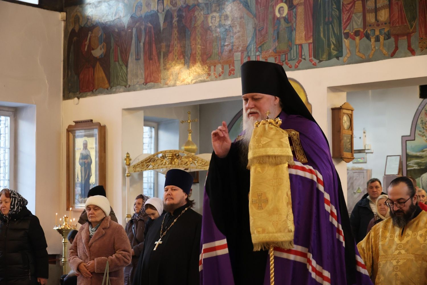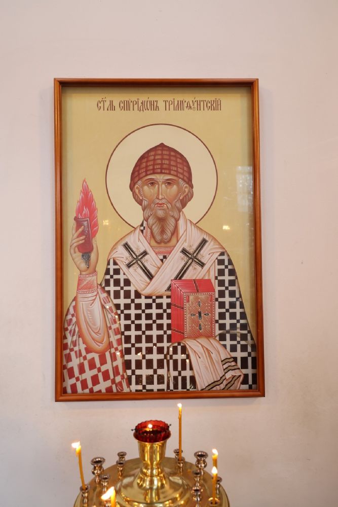 По окончании Литургии было совершено славление перед иконой святителя Спиридона Тримифунтского, затем епископ Феофан обратился к верующим с проповедью, рассказав о житии святителя Спиридона и о чудесах, совершавшихся по его святым молитвам.