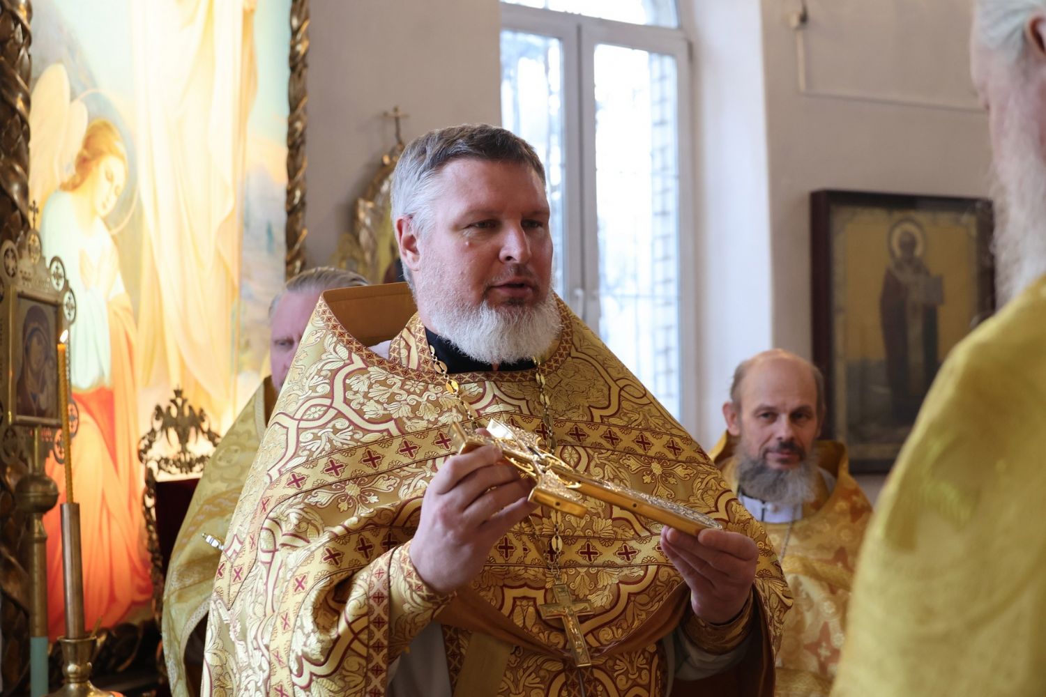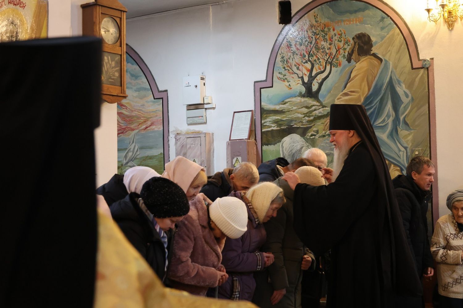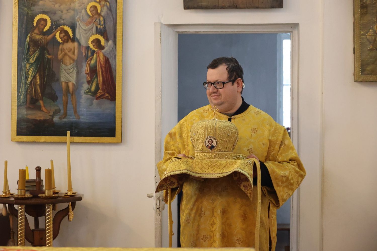 По окончании Литургии было совершено славление перед иконой святителя Спиридона Тримифунтского, затем епископ Феофан обратился к верующим с проповедью, рассказав о житии святителя Спиридона и о чудесах, совершавшихся по его святым молитвам.