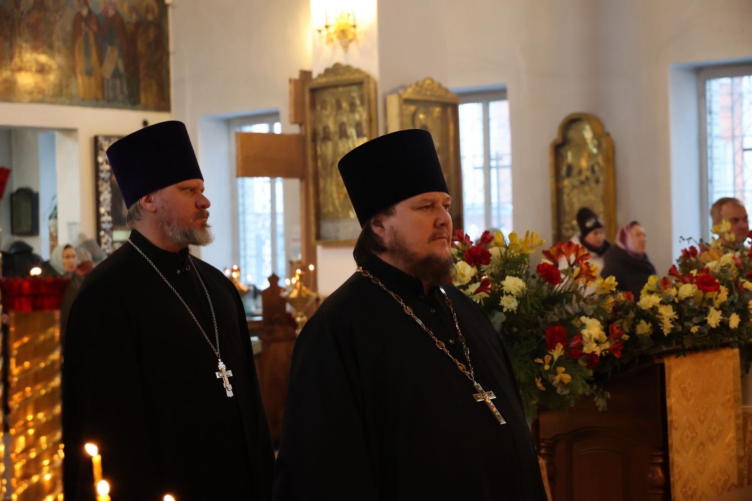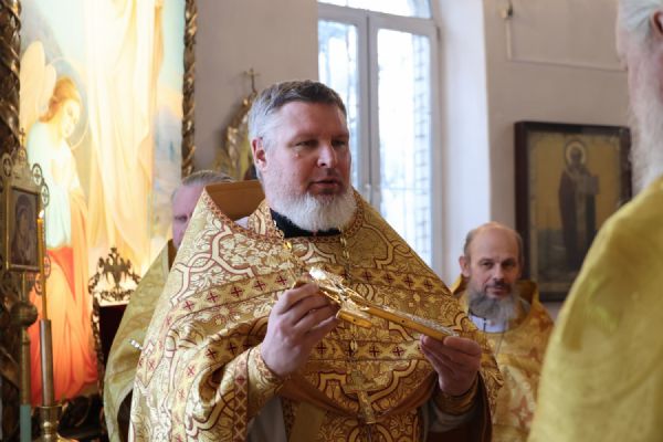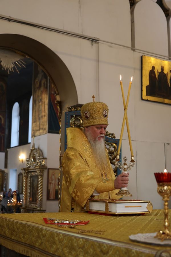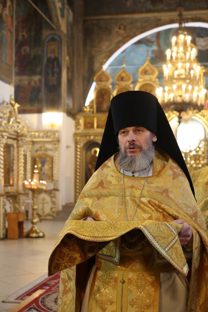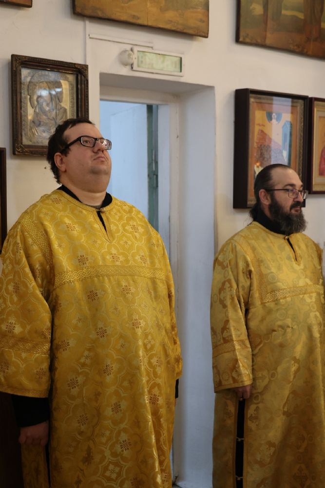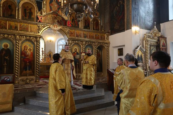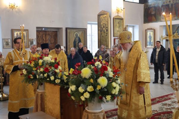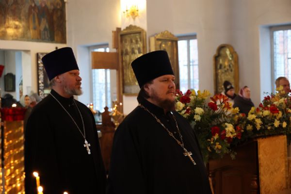 Его Преосвященству сослужили клирики собора иерей Николай Аникин, иеромонах Александр (Чеборов), иерей Сергий Першаков, иеромонах Питирим (Мосякин) и диакон Иоанн Захаров. Песнопения исполнял народный хор под управлением регента Евгения Чигарова.