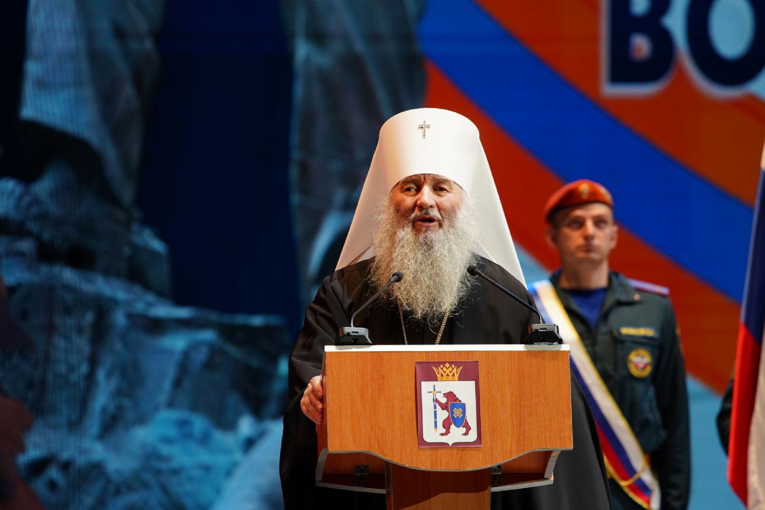 «Сегодня святая держава Российская чествует своих сынов и дочерей, избранных Господом на великое служение – защиту человека и нашего Отечества. Перелистывая страницы нашей истории, мы видим, что на них написаны пот, слезы, труд, а иногда и жертвенная кровь. И на особое служение Господь избирает тех, которые имеют в сердце своем великую любовь к Богу и к человеку. Служение, непостижимое для ума человеческого, когда наше призвание становится той реальной жизнью, когда приходится выбирать между жизнью и смертью, – и это невозможно без Бога, Который всегда оберегает и хранит. Когда мы стремимся всецело отдать себя окружающим людям, тогда крепкая Божественная защита спасает нас в самых тяжелых ситуациях.