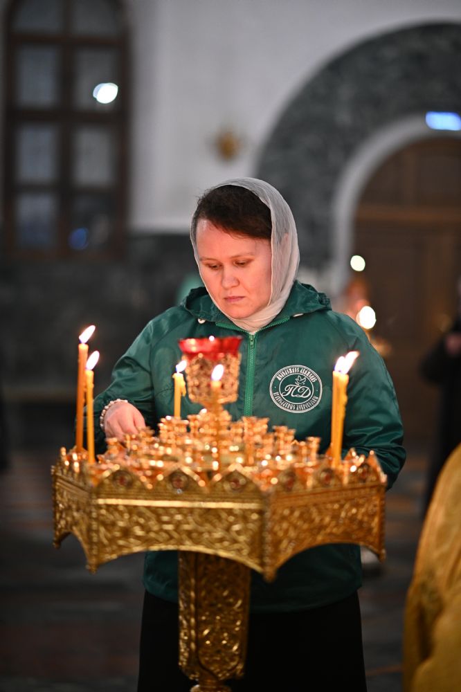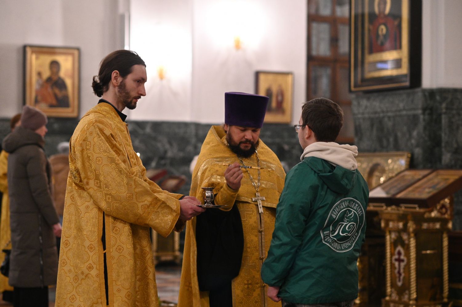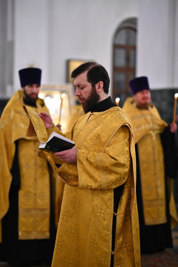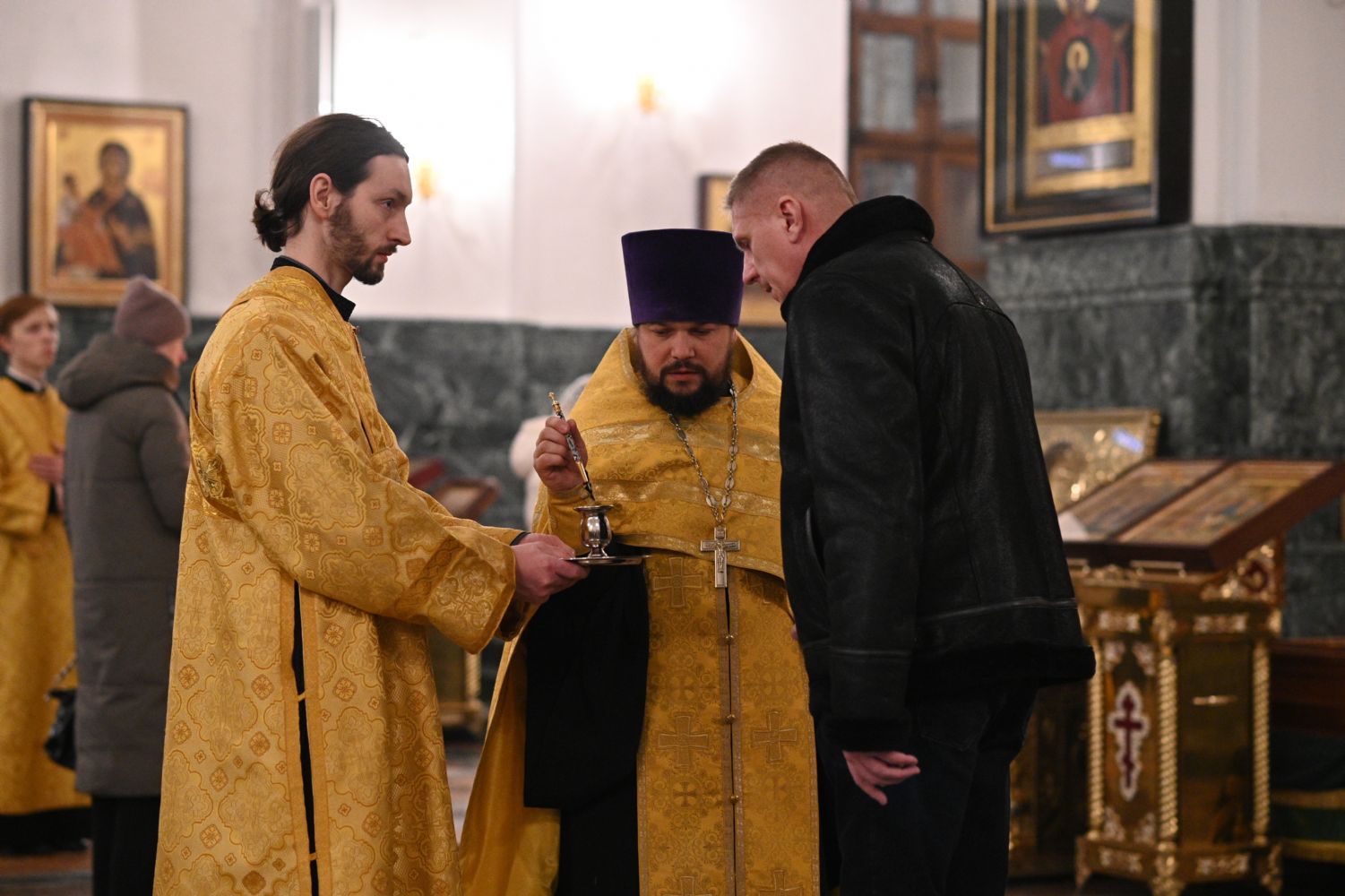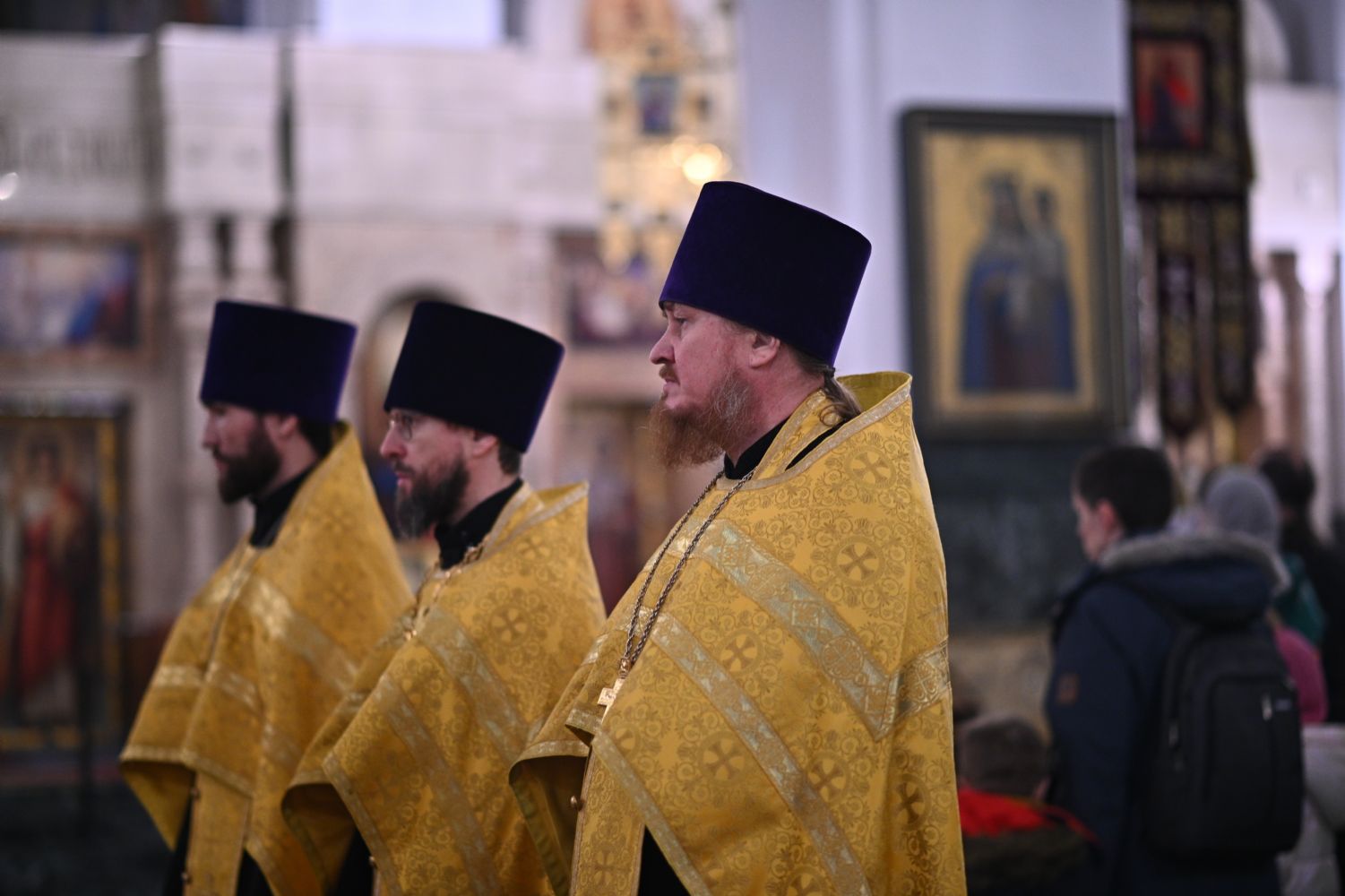 Владыке сослужили ключарь кафедрального собора протоиерей Сергий Поглазов, клирики собора иереи Никифор Захаров, Евгений Самойлов, Александр Староверов, Иоанн Милютин, диакон Артемий Бобоч, а также протодиакон Михаил Козловский. Песнопения исполняли старший и младший составы архиерейского детско-юношеского хора «Благовест» под управлением регентов Татьяны Черновой и Надежды Поздеевой.