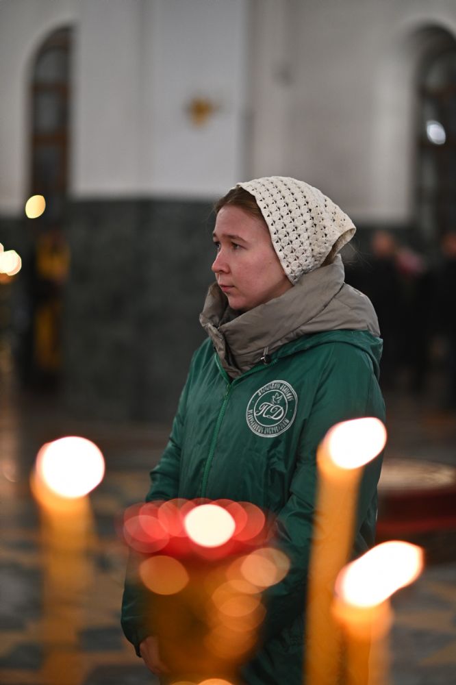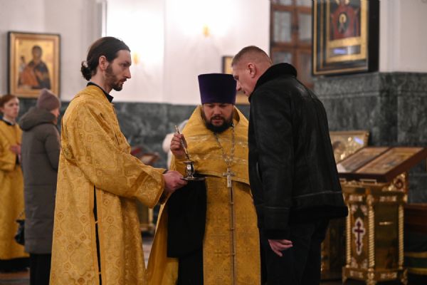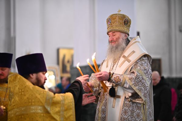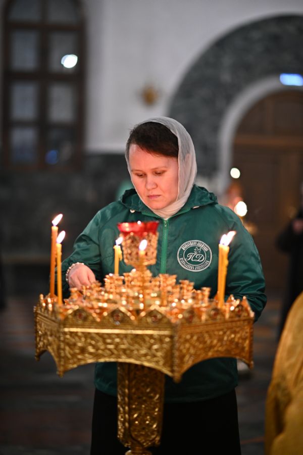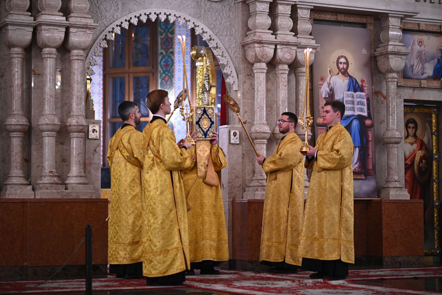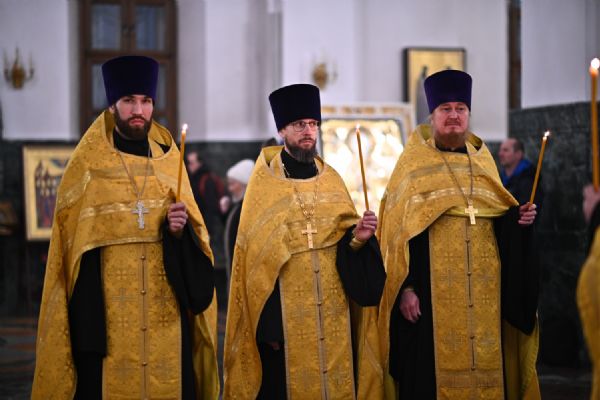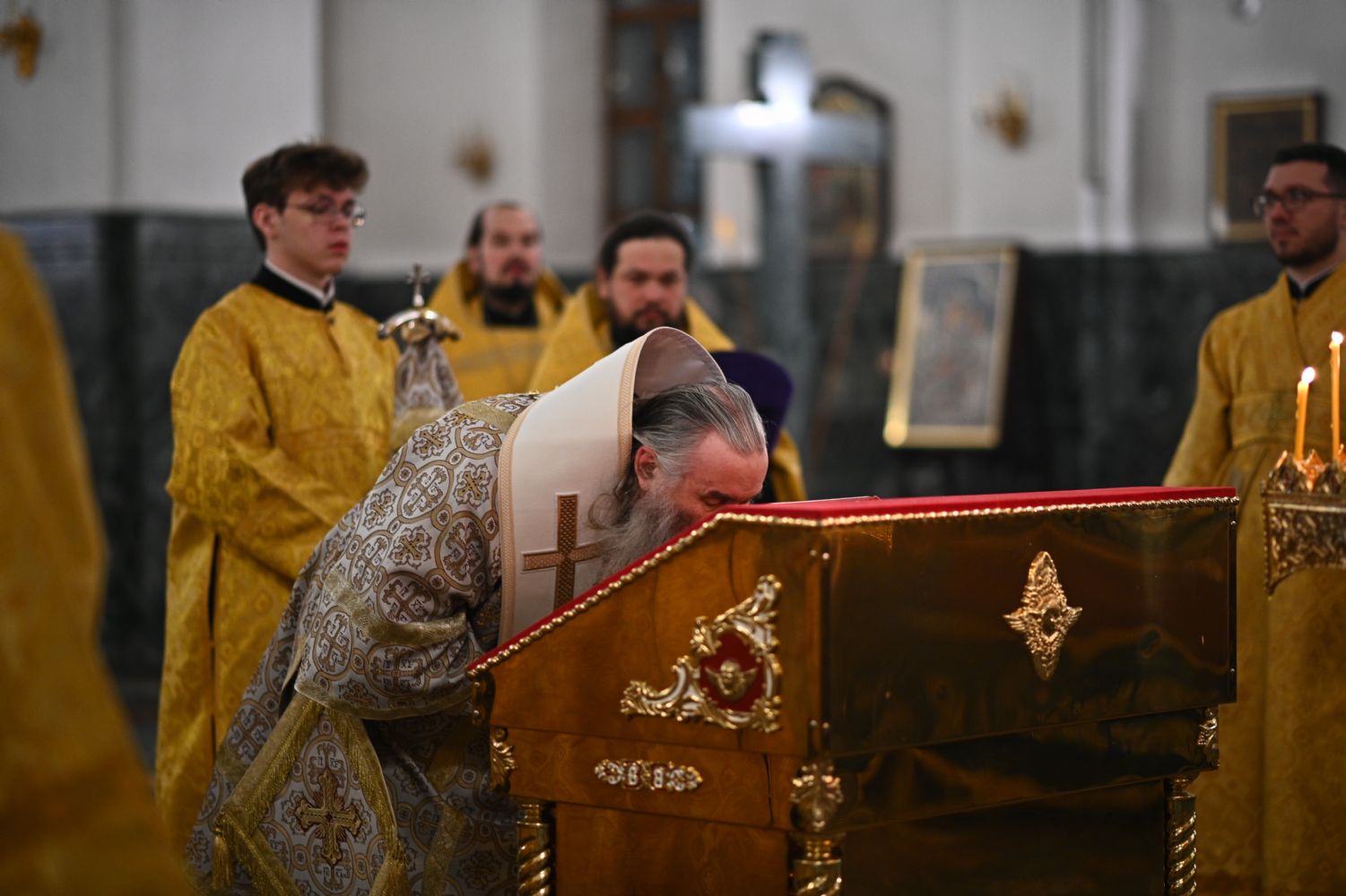 Владыке сослужили ключарь кафедрального собора протоиерей Сергий Поглазов, клирики собора иереи Никифор Захаров, Евгений Самойлов, Александр Староверов, Иоанн Милютин, диакон Артемий Бобоч, а также протодиакон Михаил Козловский. Песнопения исполняли старший и младший составы архиерейского детско-юношеского хора «Благовест» под управлением регентов Татьяны Черновой и Надежды Поздеевой.
