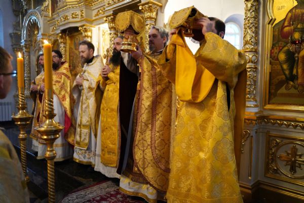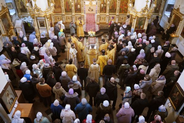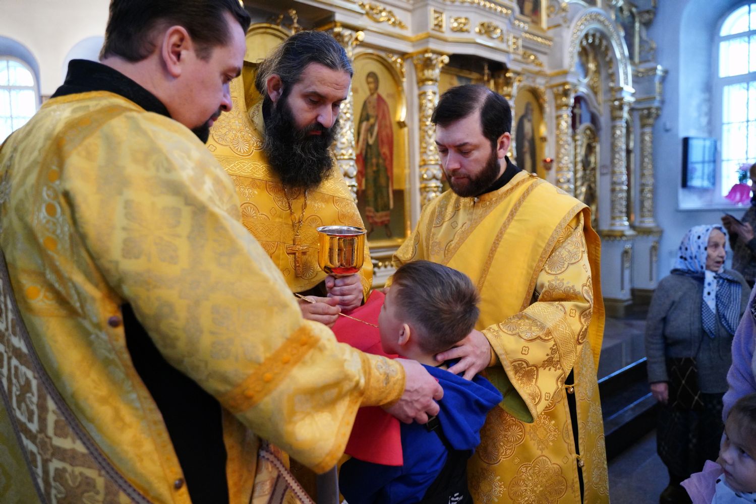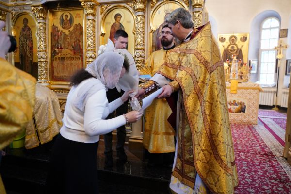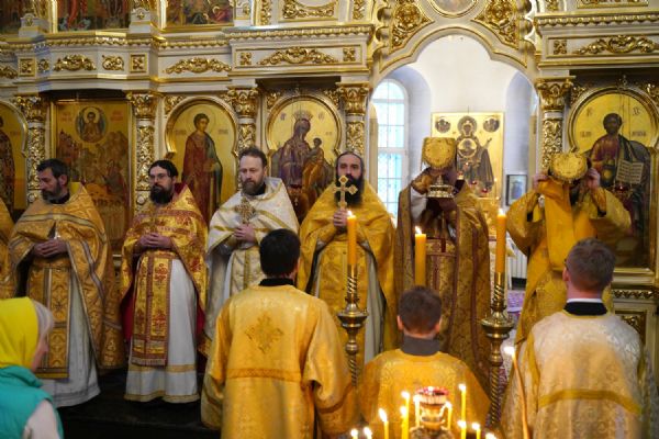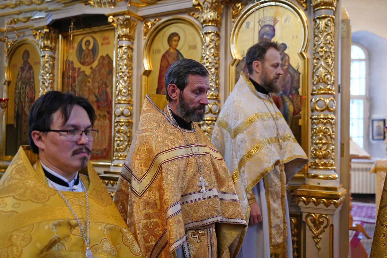 В праздничный день в храме была совершена соборная Божественная литургия, возглавил которую настоятель храма иерей Александр Лоскутов. Ему сослужили клирики храма иерей Никита Смирнов, иерей Евгений Симаков и диакон Даниил Зорин, а также клирик храма Державной иконы Божией Матери п. Медведево иерей Алексий Добиков, настоятель Петропавловского храма с. Верх-Ушнур иерей Алексий Тарасов, настоятель Богоявленского храма с. Великополье иерей Олег Михайлов, клирик храма Всех святых в земле Российской просиявших п. Советский иерей Димитрий Кудряшов, клирик Воскресенского собора диакон Алексий Кузнецов и клирик Благовещенского кафедрального собора диакон Артемий Бобоч. Песнопения исполнял хор храма под управлением регента Натальи Поповой.
