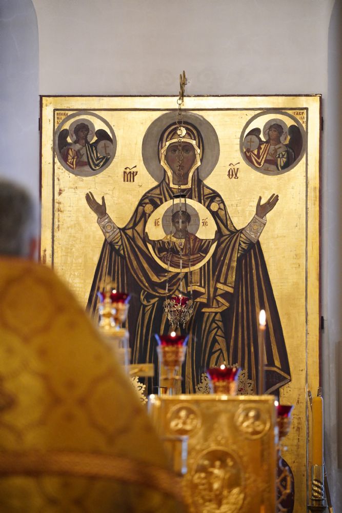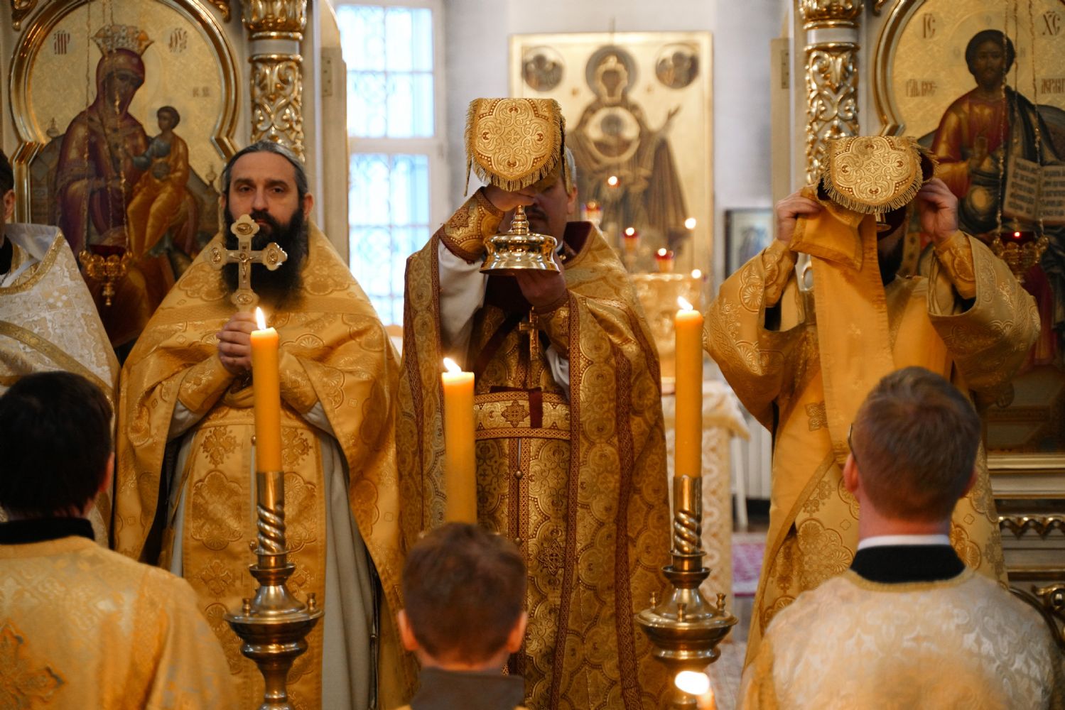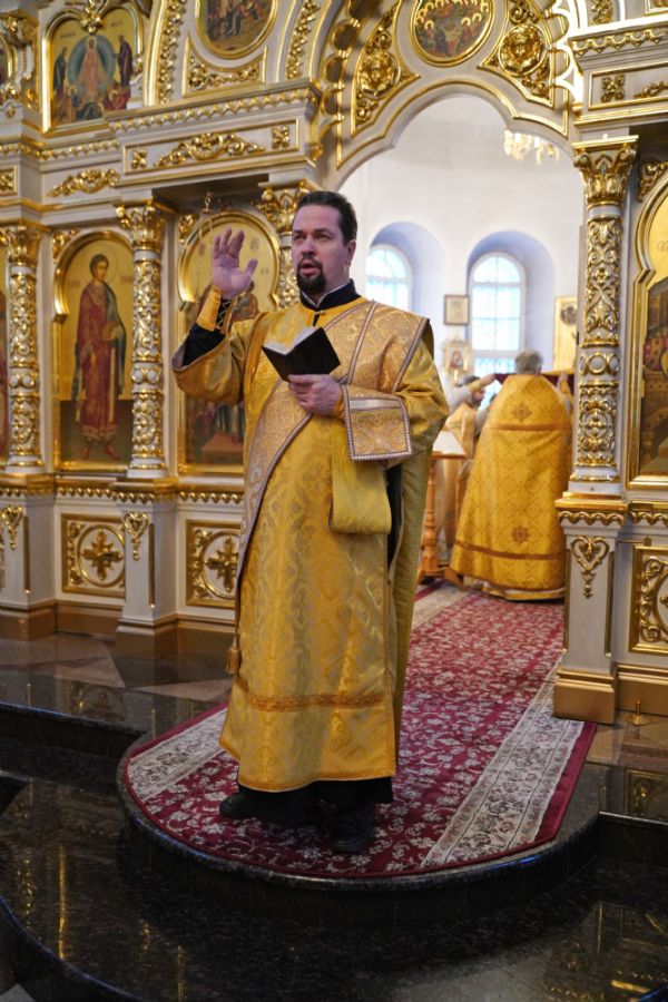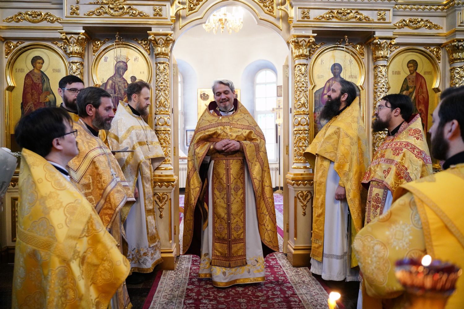 В праздничный день в храме была совершена соборная Божественная литургия, возглавил которую настоятель храма иерей Александр Лоскутов. Ему сослужили клирики храма иерей Никита Смирнов, иерей Евгений Симаков и диакон Даниил Зорин, а также клирик храма Державной иконы Божией Матери п. Медведево иерей Алексий Добиков, настоятель Петропавловского храма с. Верх-Ушнур иерей Алексий Тарасов, настоятель Богоявленского храма с. Великополье иерей Олег Михайлов, клирик храма Всех святых в земле Российской просиявших п. Советский иерей Димитрий Кудряшов, клирик Воскресенского собора диакон Алексий Кузнецов и клирик Благовещенского кафедрального собора диакон Артемий Бобоч. Песнопения исполнял хор храма под управлением регента Натальи Поповой.