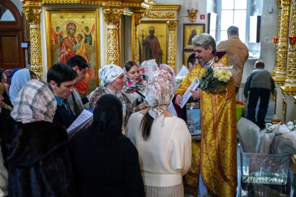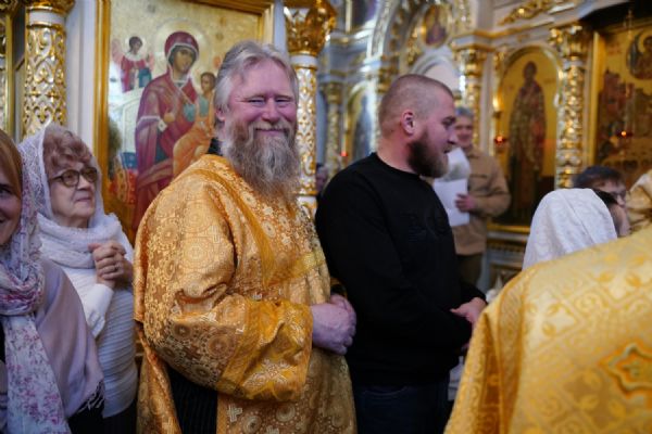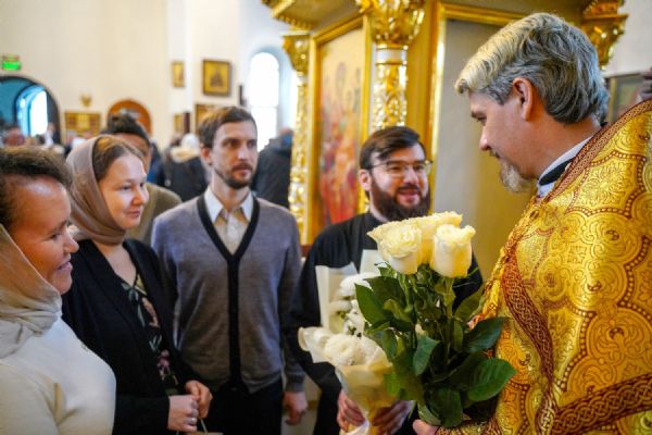 По окончании Литургии с 10-летием храма его настоятеля тепло поздравили собратья по алтарю, прихожане, православные добровольцы.