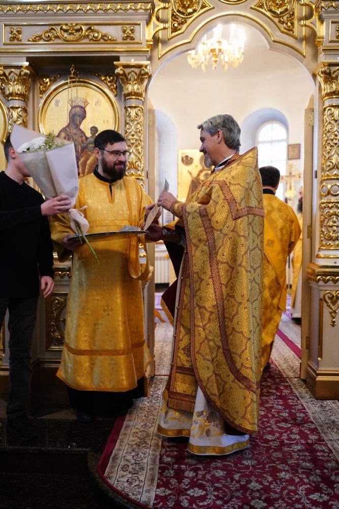 Отец Александр поблагодарил всех за радость совместной молитвы и вручил грамоты и благодарственные письма священно- и церковнослужителям, благотворителям и наиболее активным прихожанам храма.