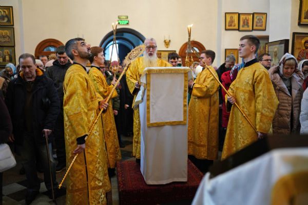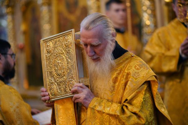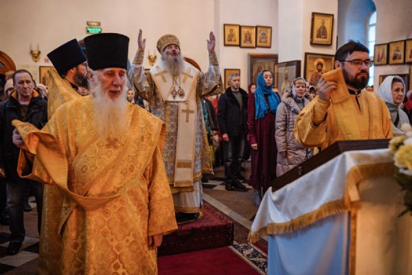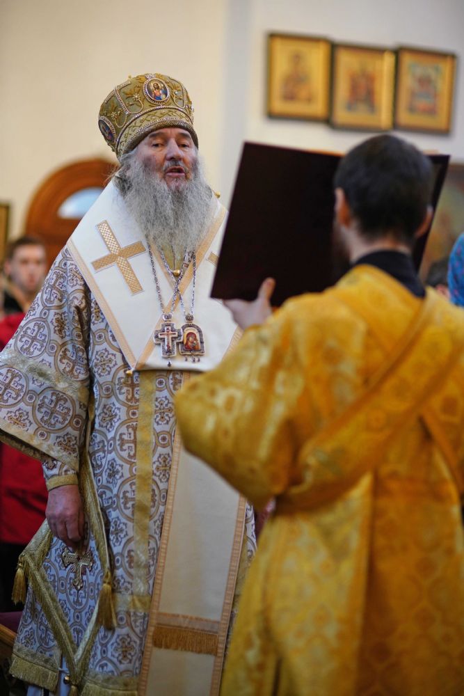 После чтения Евангелия митрополит Иоанн обратился к собравшимся с проповедью, разъяснив духовный смысл прочитанного за богослужением евангельского зачала о званных на пир.