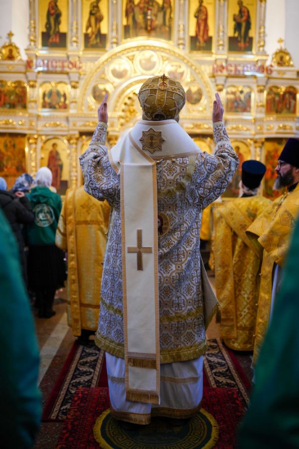 Архипастырю сослужили секретарь Йошкар-Олинского епархиального управления иерей Димитрий Дьяков, настоятель храма иерей Александр Лоскутов, клирик храма диакон Даниил Зорин, а также протодиакон Михаил Козловский. Песнопения исполнял хор храма под управлением Натальи Поповой.