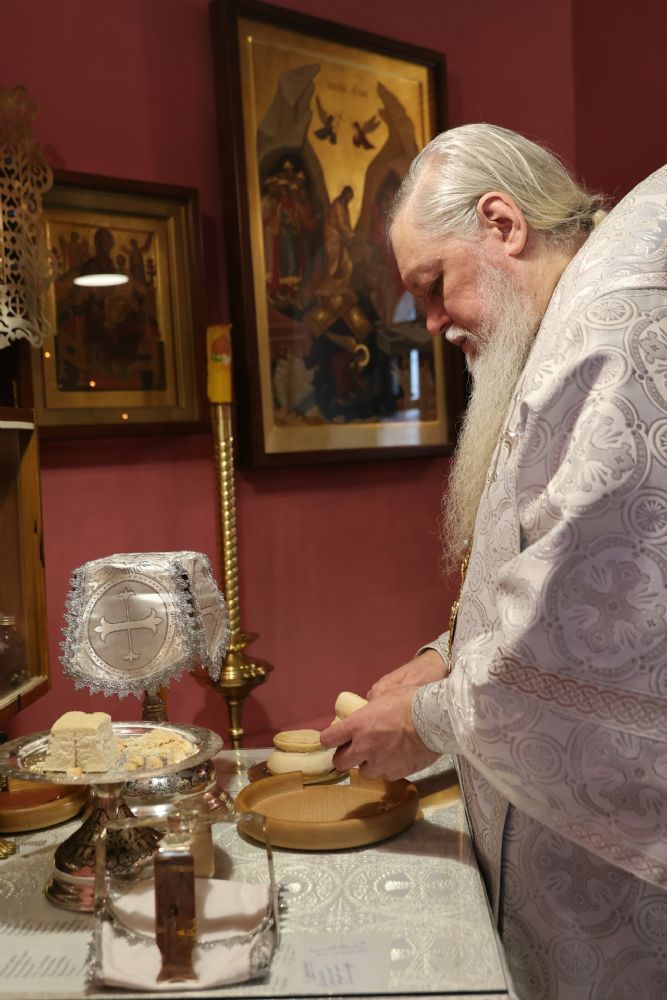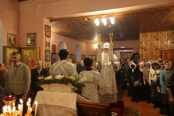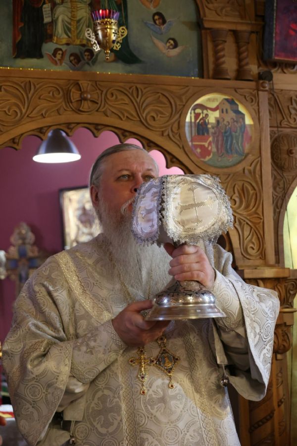 По окончании Литургии епископ Феофан совершил славление и вознес молитву перед образом святого праведного Иоанна Кронштадтского.