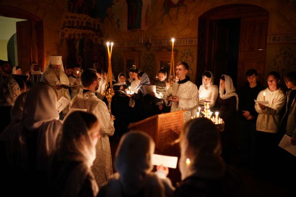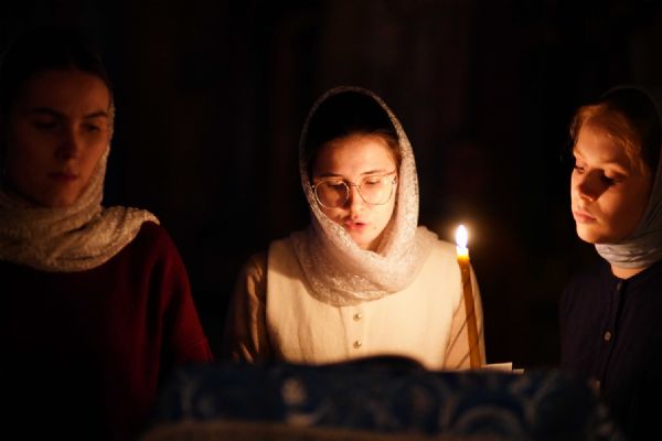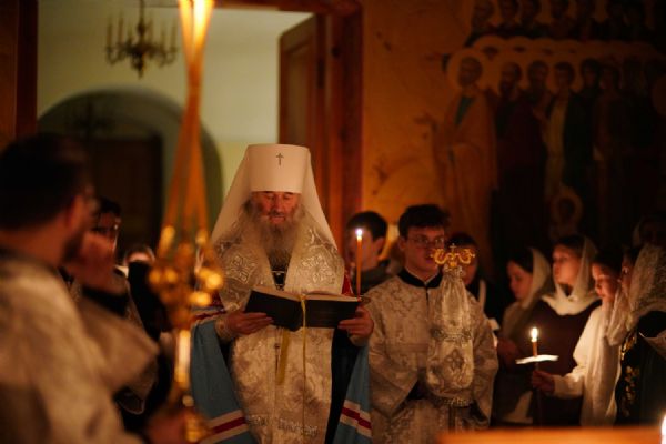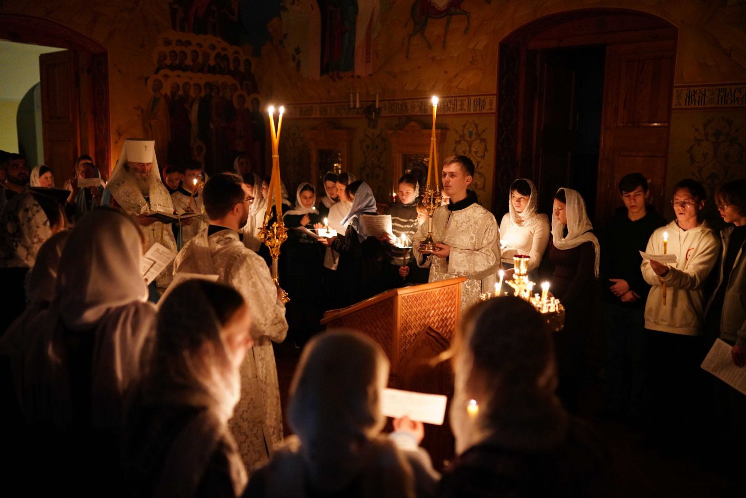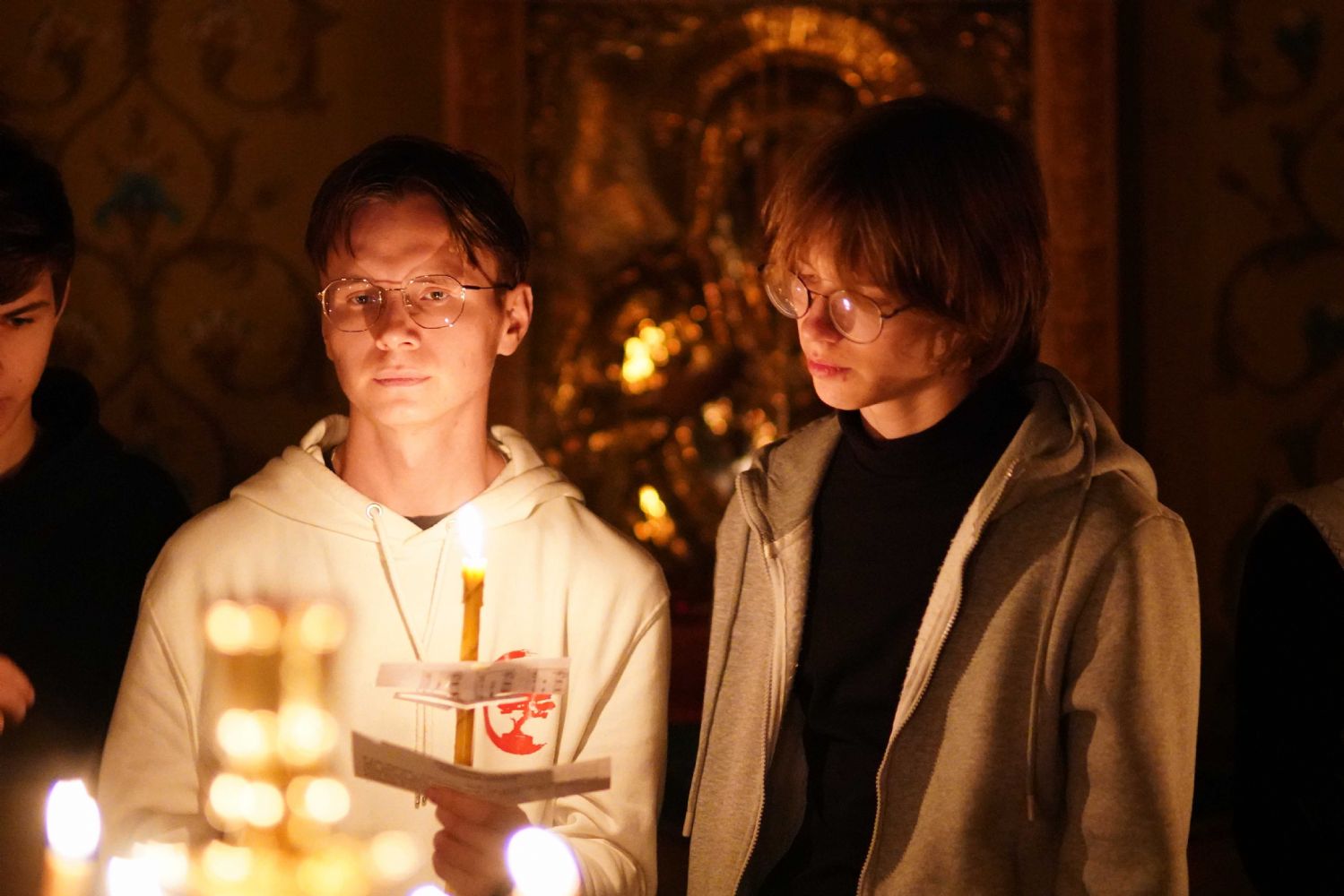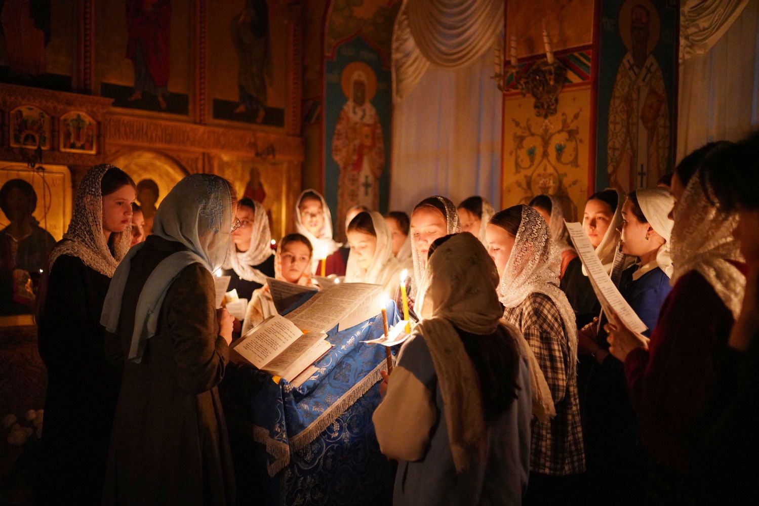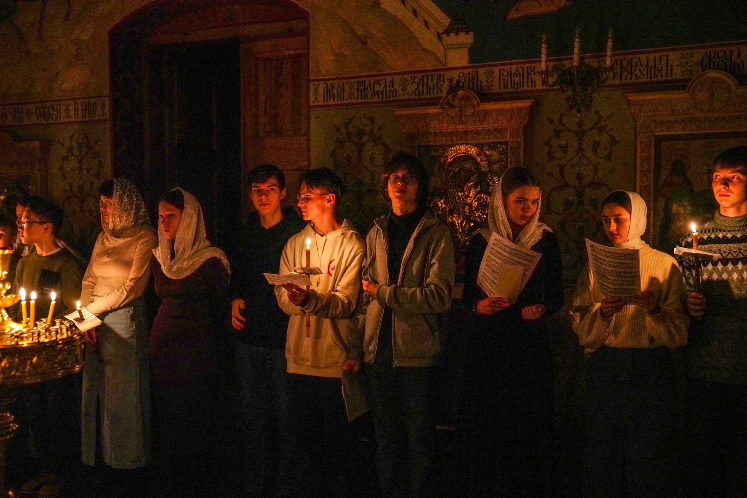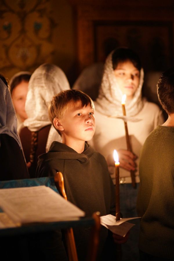 Все чтения и песнопения вечерни, повечерия и утрени исполняли певчие детско-юношеского хора. Специально для лучшего освоения ими порядка и особенностей богослужения митрополит Иоанн регулярно проводит в домовом храме такие богослужебные практики, которые приносят певчим большую пользу.
