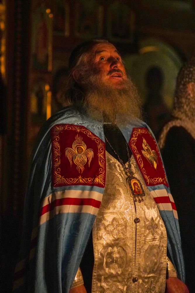 Владыке сослужил протодиакон Михаил Козловский. Пел архиерейский детско-юношеский хор «Благовест» под руководством регентов Татьяны Черновой и Софии Андреевой.