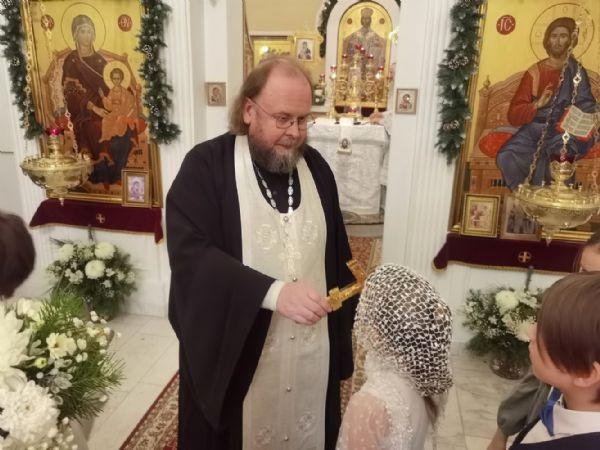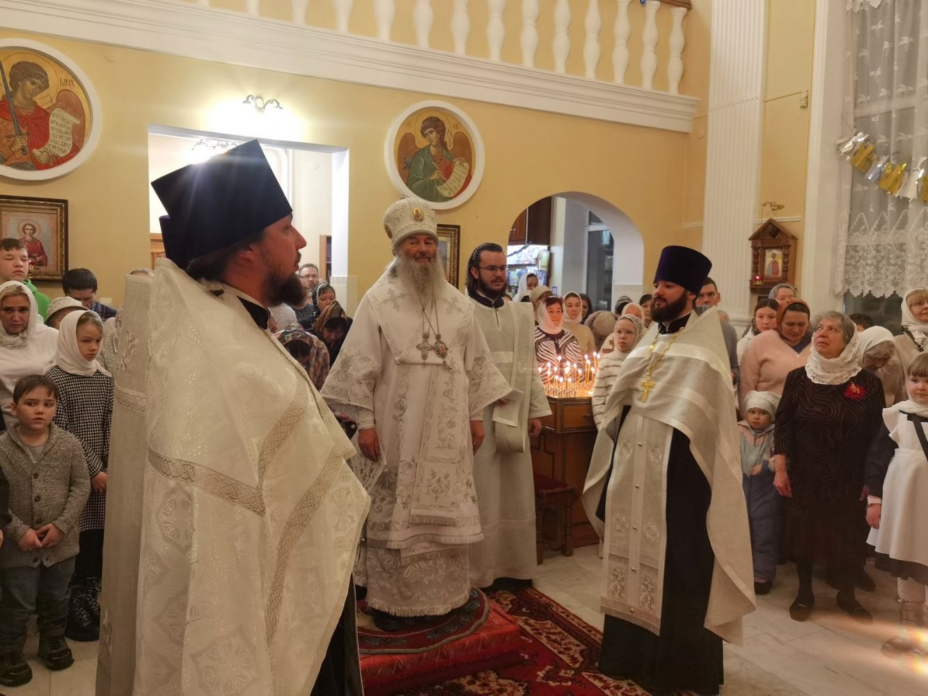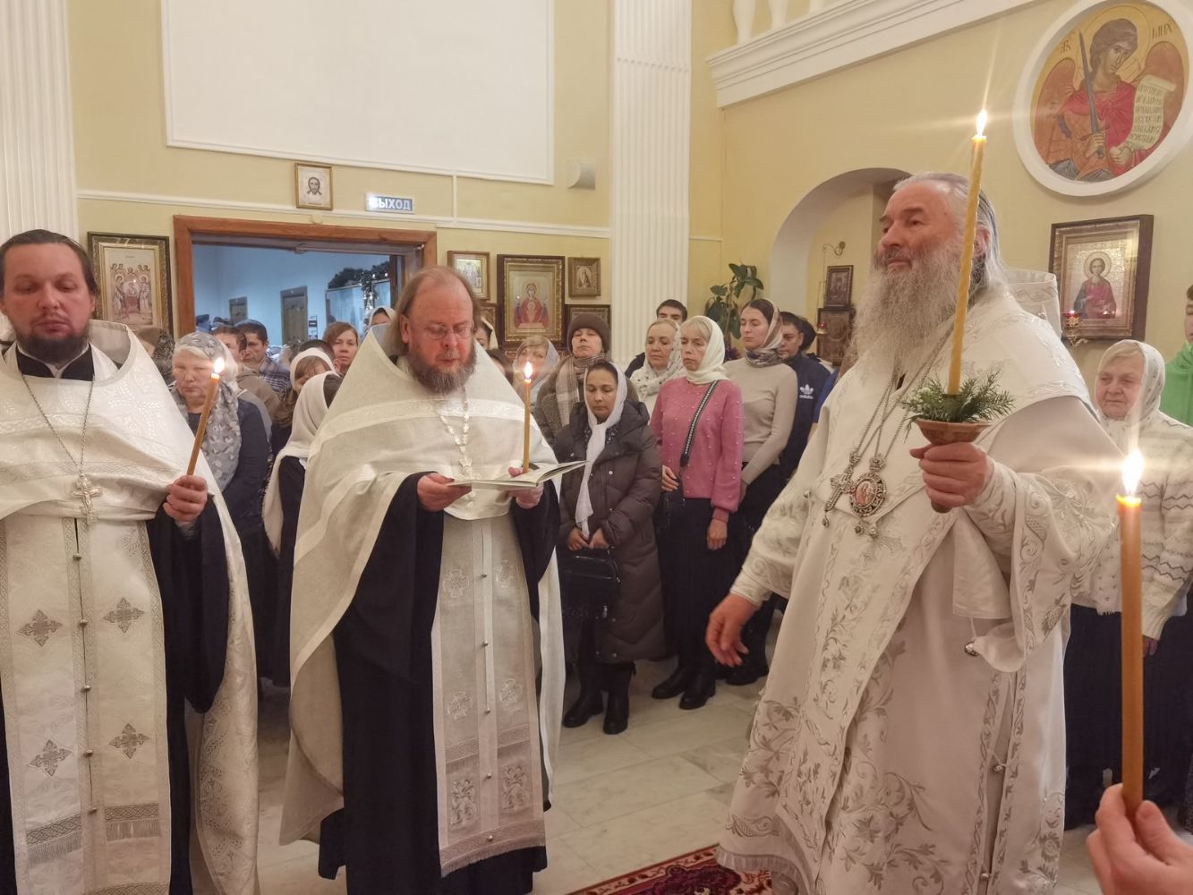 Рождественским вечером 7 декабря, накануне дня памяти священномученика Леонида, епископа Марийского, митрополит Йошкар-Олинский и Марийский Иоанн возглавил вечерню с пением акафиста Иисусу Сладчайшему в храме мученицы Татианы г. Йошкар-Олы.
