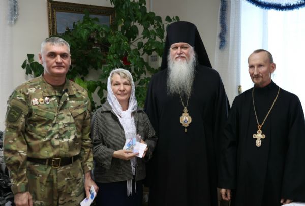 Атаман регионального отделения Союза казаков-воинов России и Зарубежья Эдуард Кузнецов и епископ Феофан вручили медали «За оказание помощи участникам СВО» волонтерам, принимающим участие в плетении маскировочных сетей, подготовке и отправке гуманитарного груза и в других добрых делах.