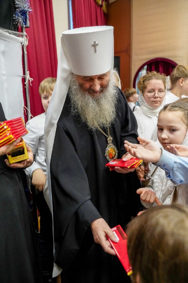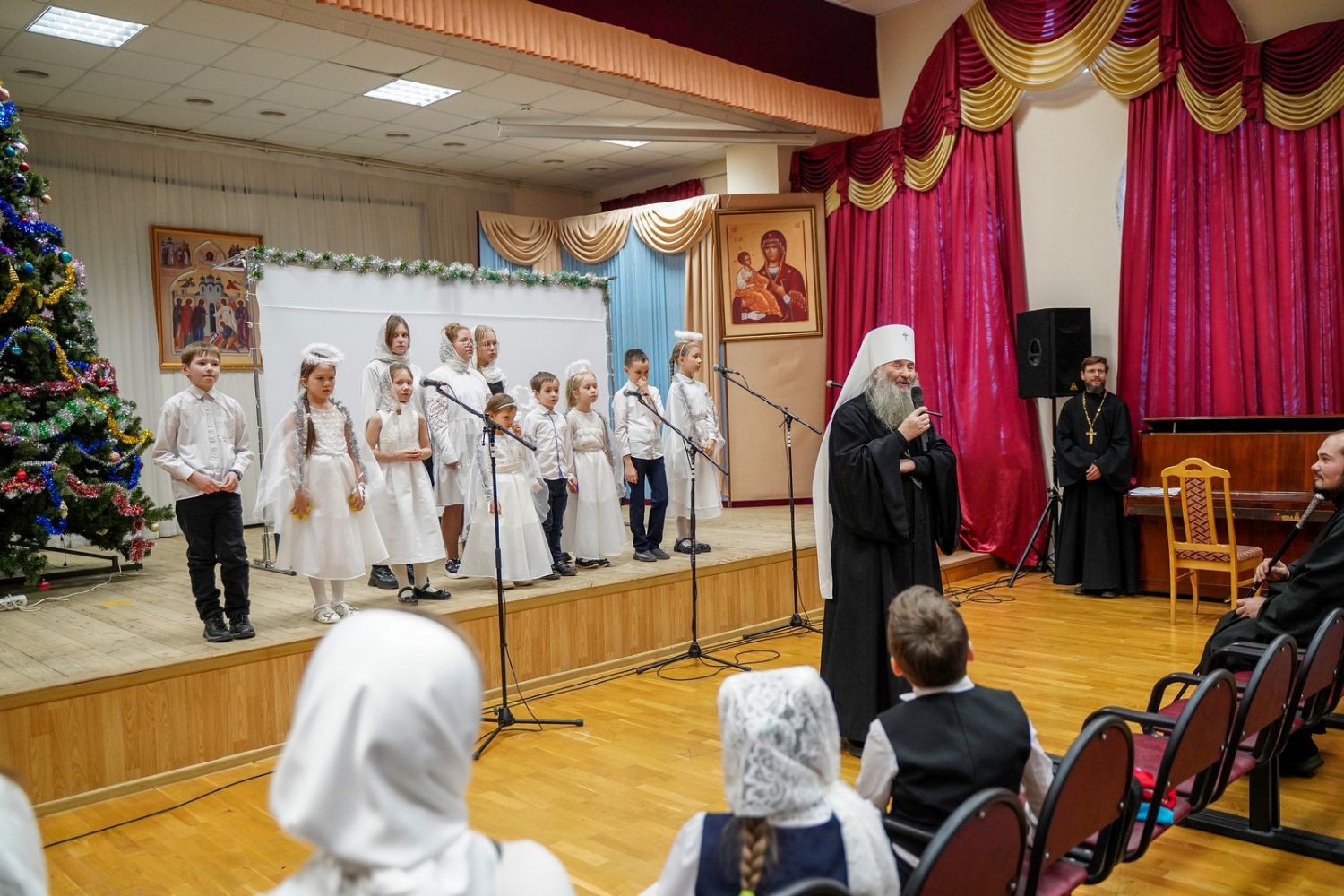 После концерта владыка Иоанн поздравил всех со светлым праздником Рождества Христова и Собором Пречистой Богоматери и вручил юным актерам сладкие подарки.
