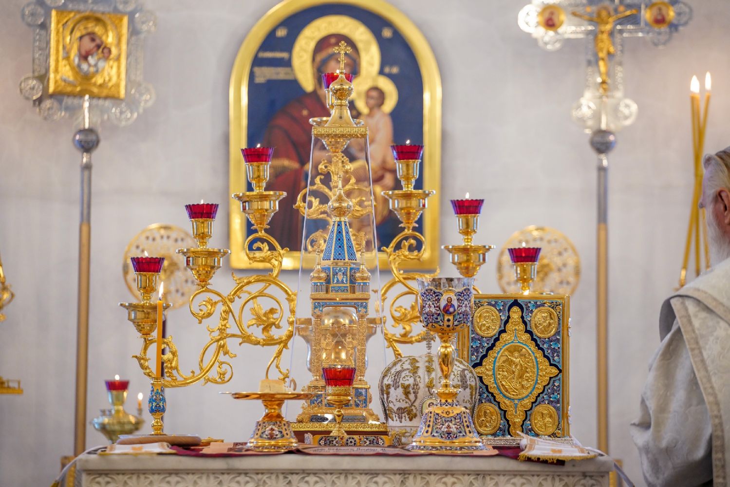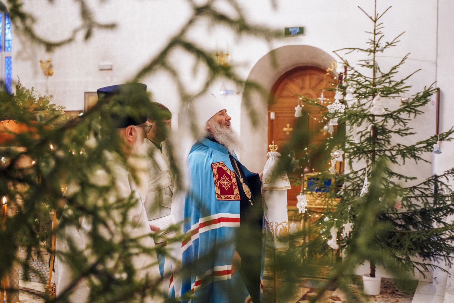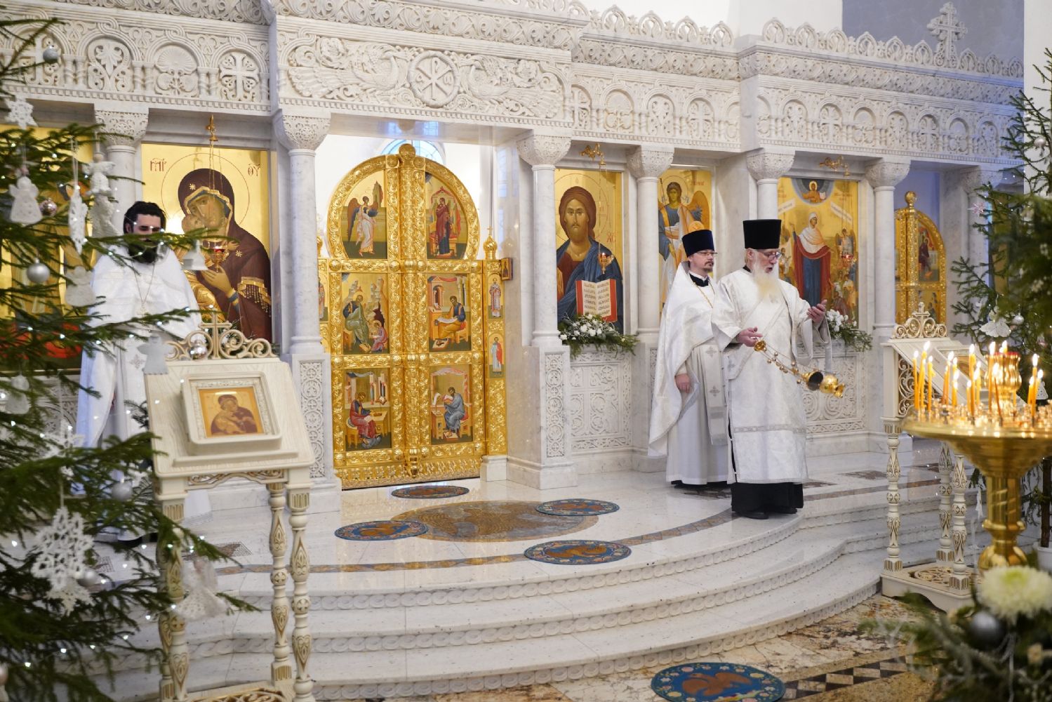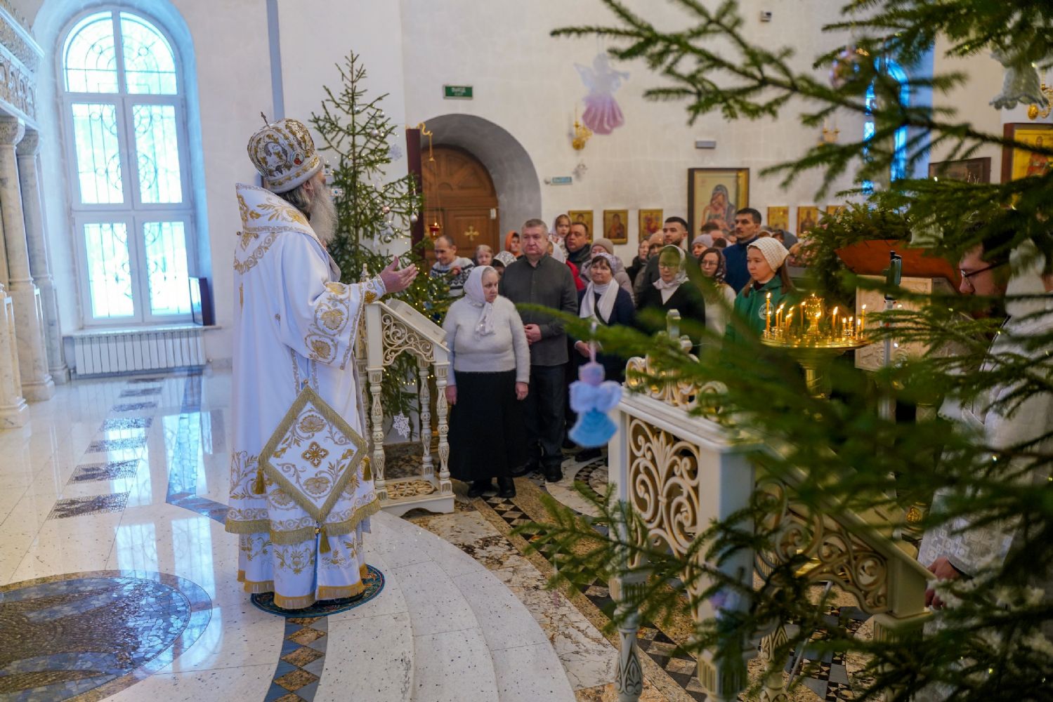 Архипастырю сослужили настоятель храма иерей Алексий Михеев, клирик храма иерей Василий Пряморуков и протодиакон Михаил Козловский. Песнопения исполняли хор храма под управлением Александры Ивановой и детский хор воскресной школы под руководством Ольги Шевчук.
