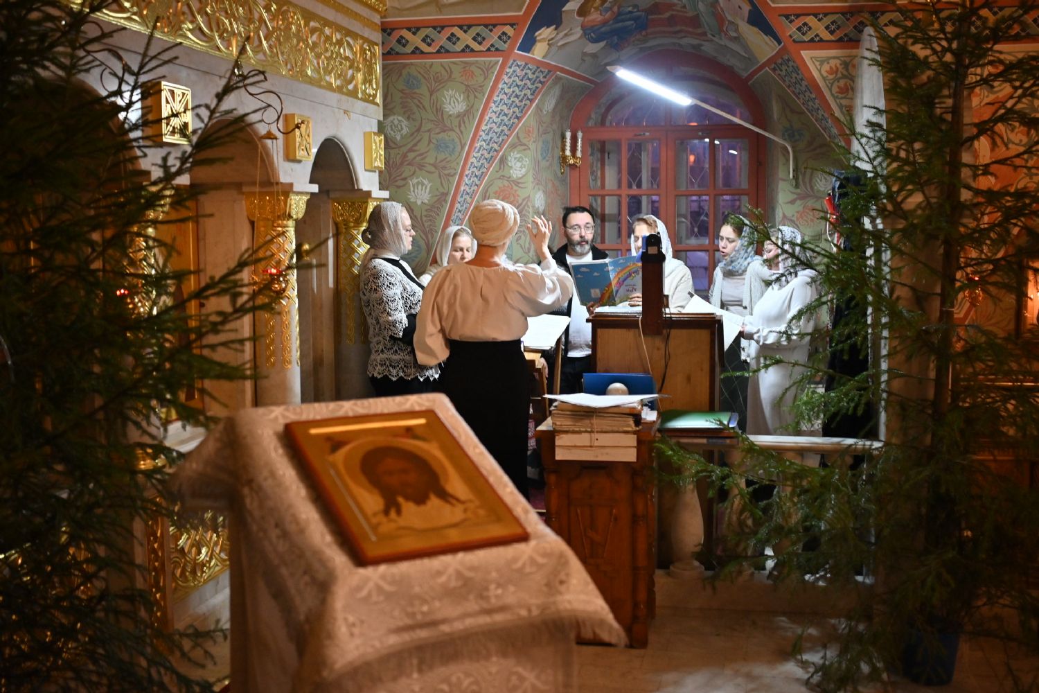 После богослужения певчие Троицкого храма отправились в епархиальное управление, чтобы поздравить владыку с Рождеством Христовым, исполнив для него праздничные песнопения.