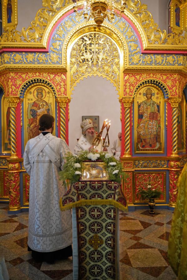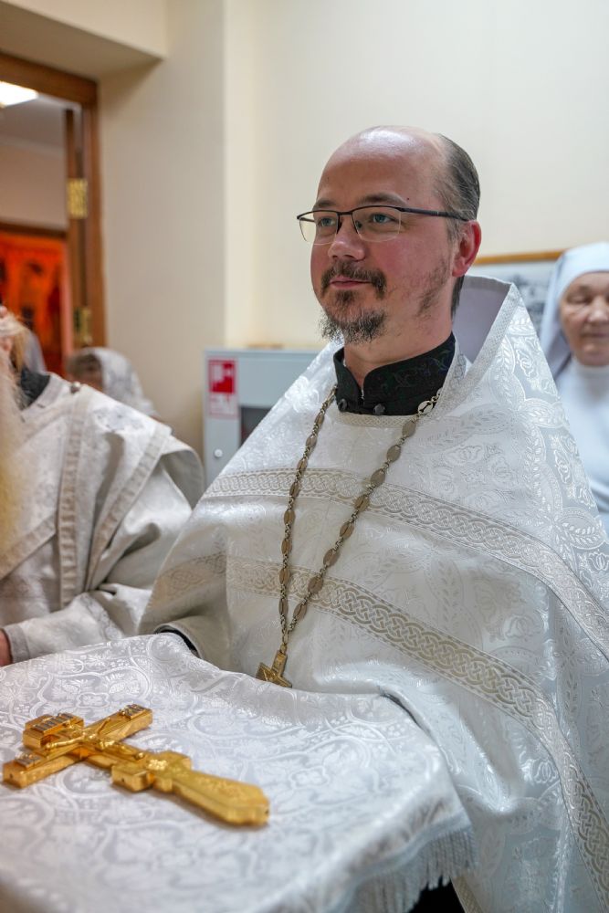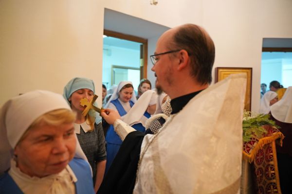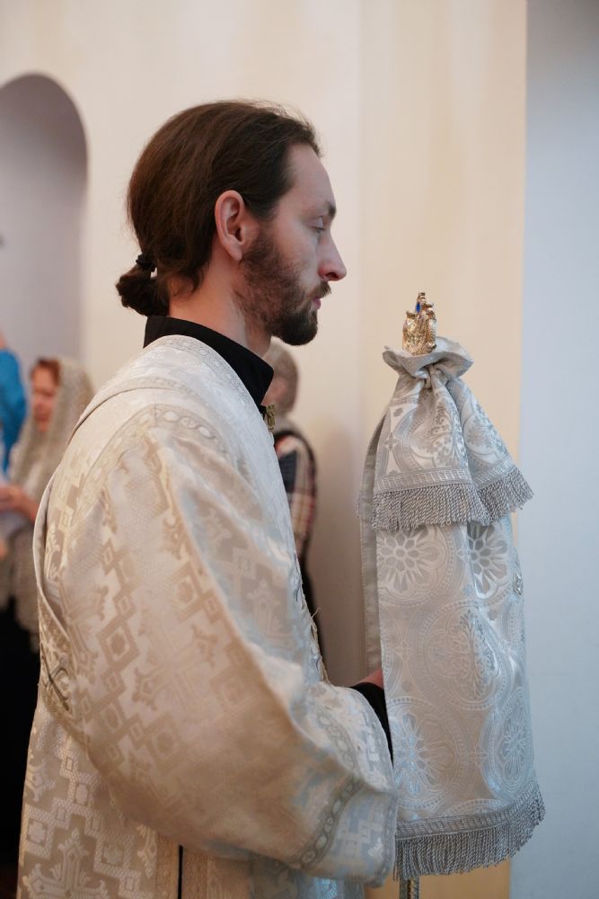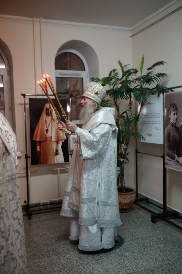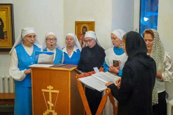 За праздничной вечерней митрополиту Йошкар-Олинскому и Марийскому Иоанну сослужили ключарь Благовещенского кафедрального собора, директор Православного центра протоиерей Сергий Поглазов, руководитель епархиального отдела социального служения и церковной благотворительности иерей Алексий Михеев и протодиакон Михаил Козловский. Песнопения исполнял хор сестричества под управлением Елены Яровиковой.