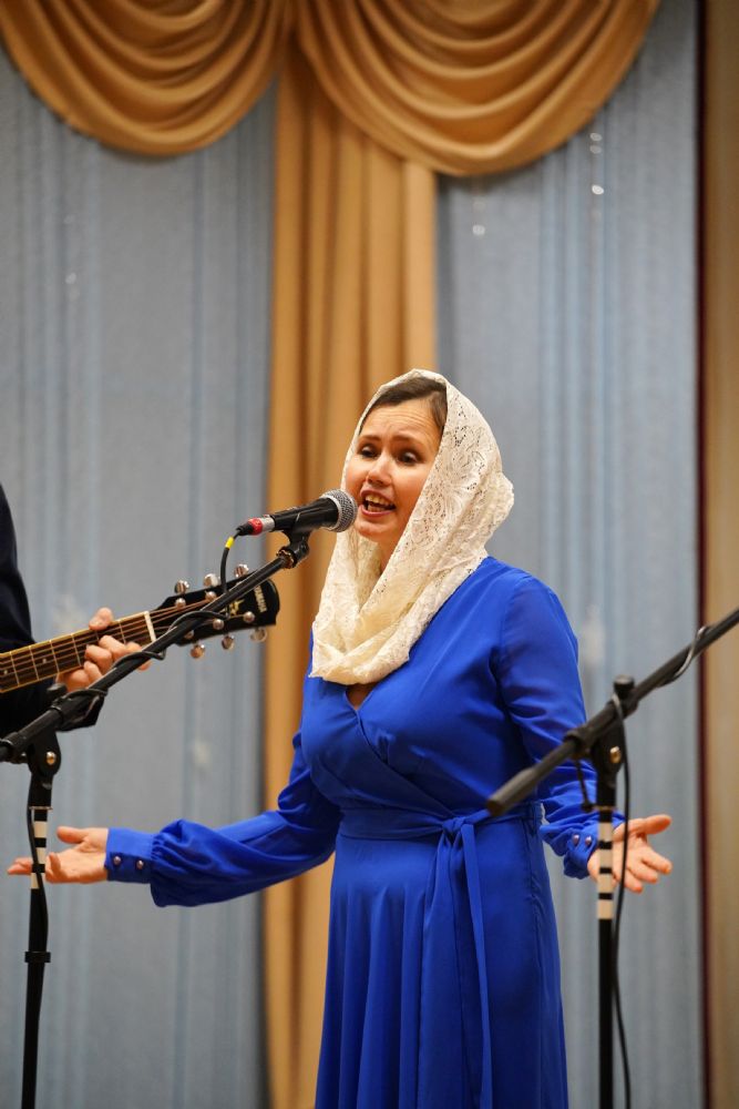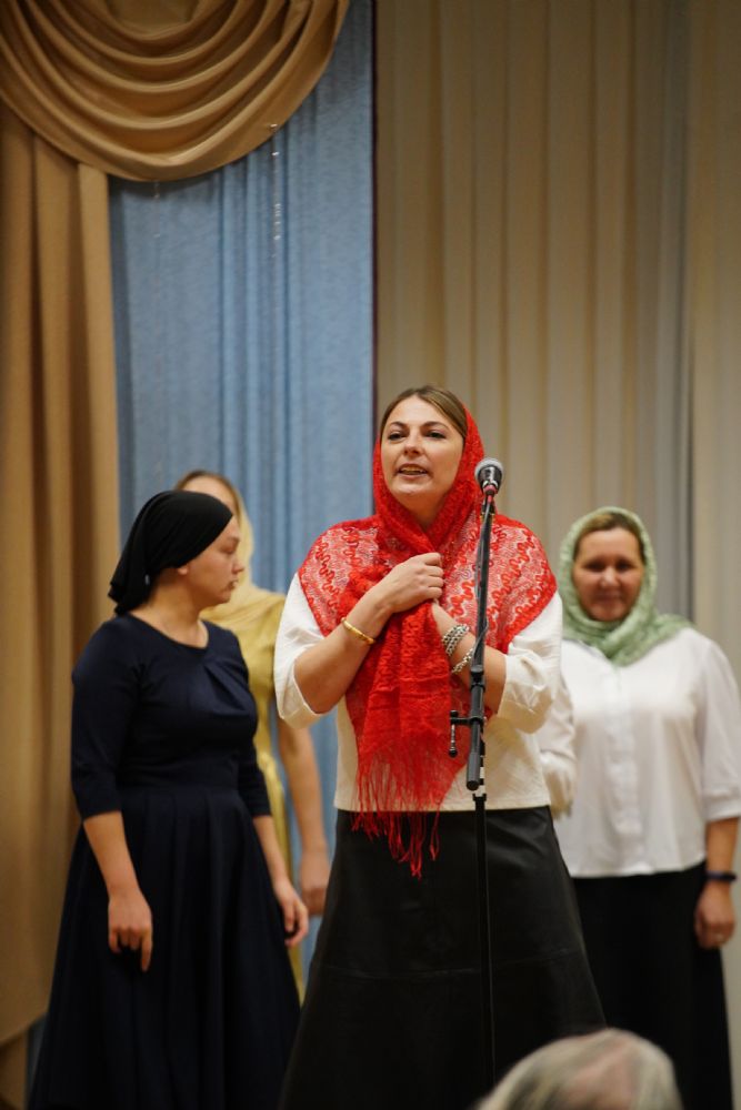 Концертная программа, которую вели актриса республиканского ТЮЗа Любовь Купсольцева и артист театра им. Шкетана Алексей Тетерин, началась с выступления хора сестричества под руководством регента Ларисы Максимовой – они исполнили рождественские песни на русском и марийском языках.