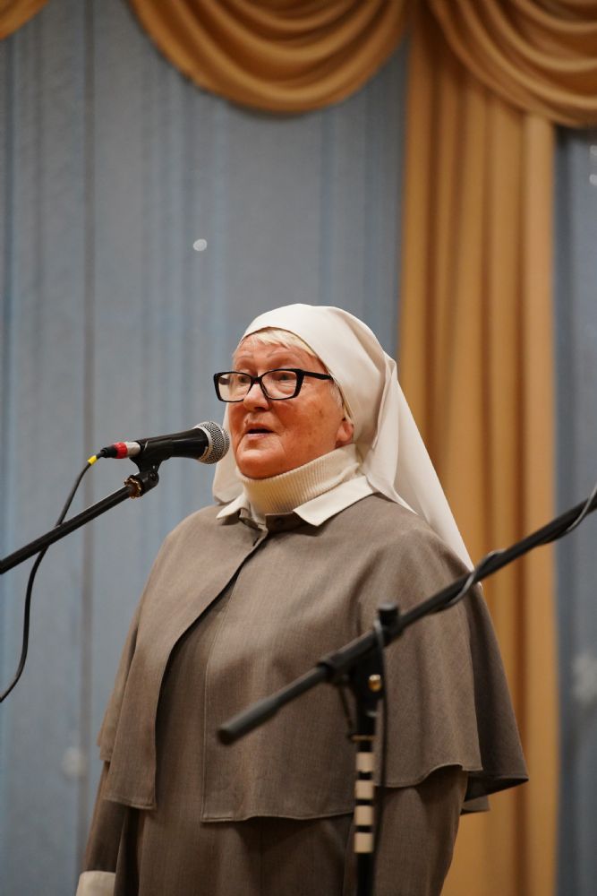 Порадовали зрителей выступления сестры милосердия Лидии Стариковой со стихотворением Светланы Копыловой «Высокая ставка», группы сестер с юмористической сценкой «Конкурс на самую скромную женщину», автора-исполнителя Лилии Алексеевой с рождественской песней собственного сочинения.
