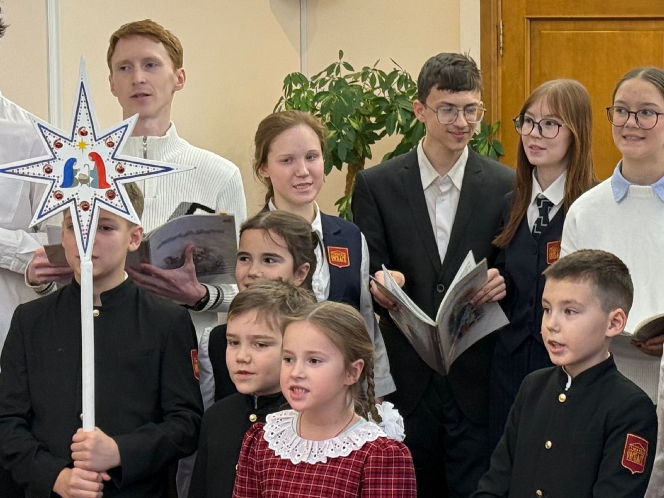 Татианинский хор, который объединяет целых три поколения гимназии — выпускников, действующих и будущих гимназистов — с радостью принёс в администрацию атмосферу праздника. Гимназисты исполнили рождественские песнопения, подарив собравшимся душевность и тепло.