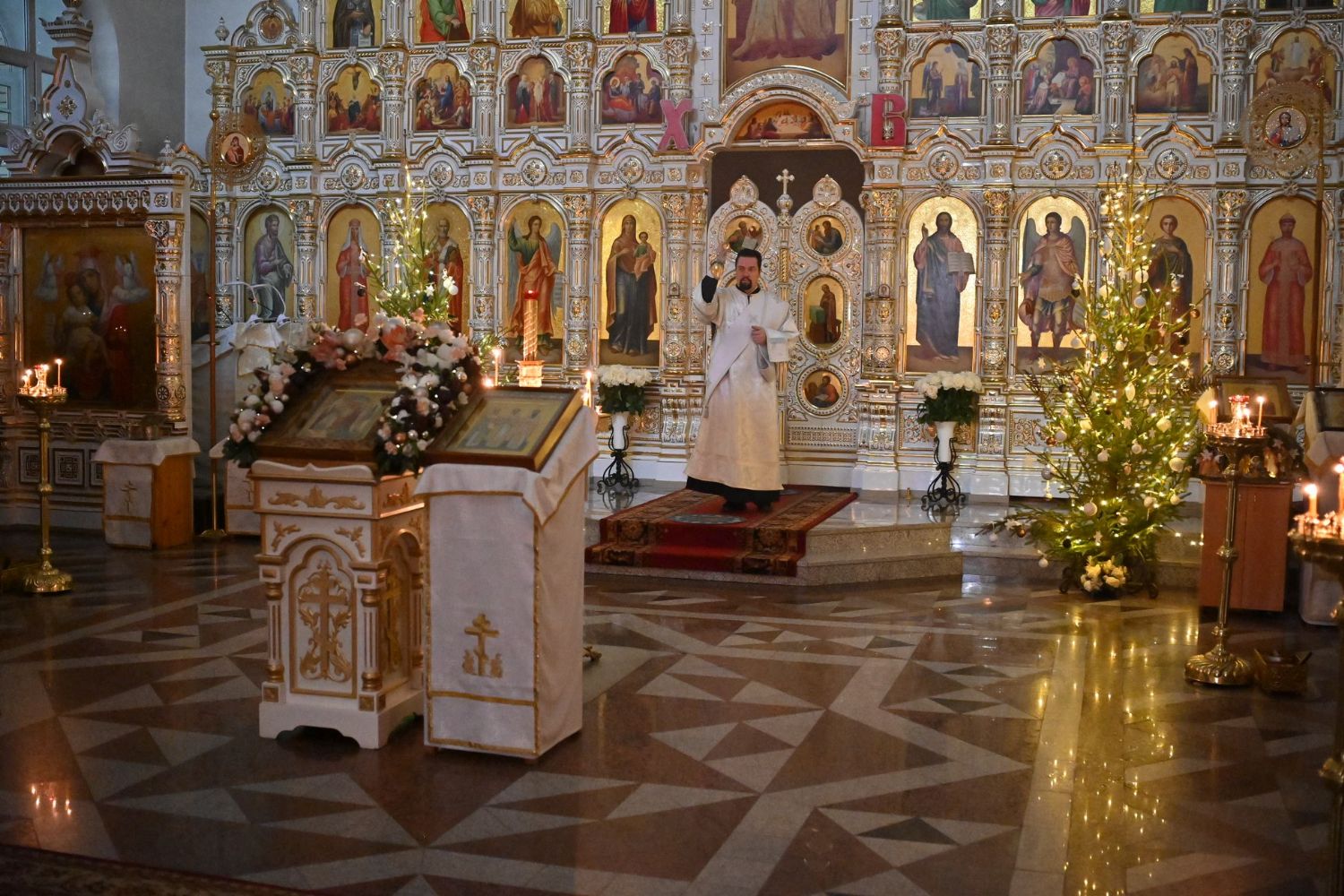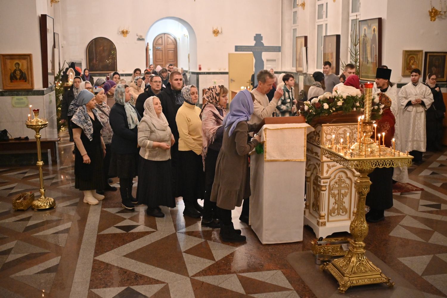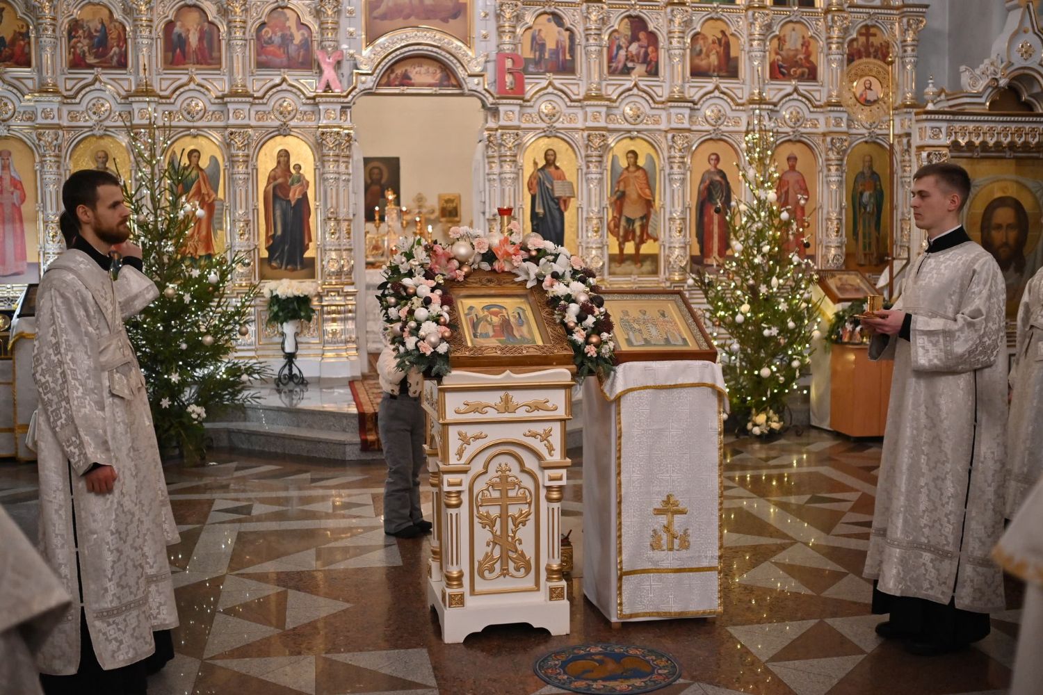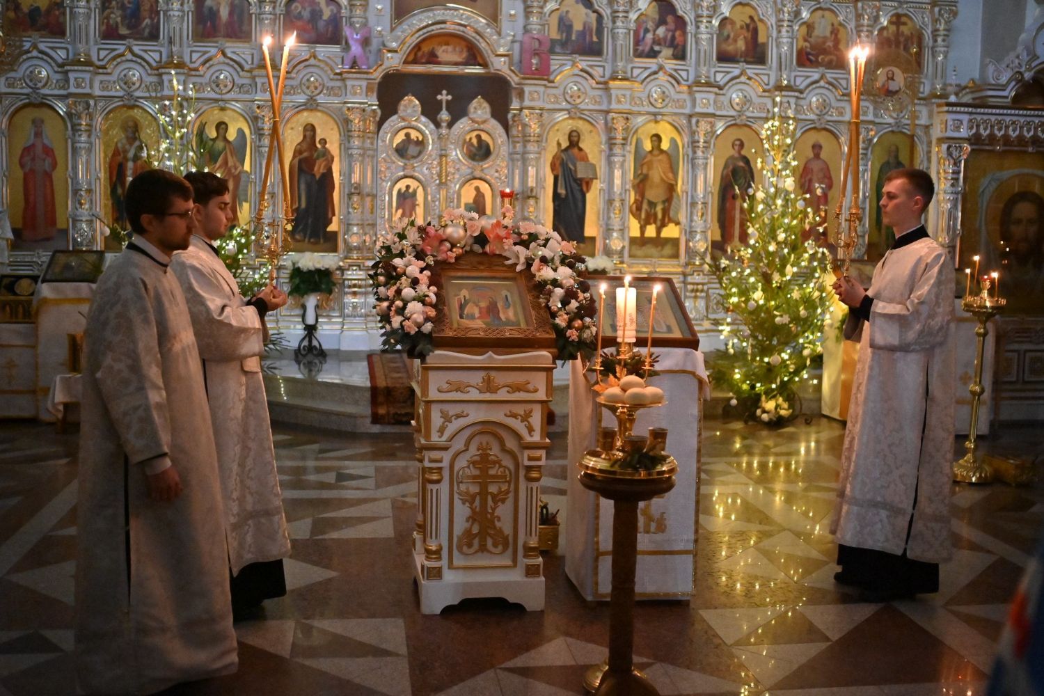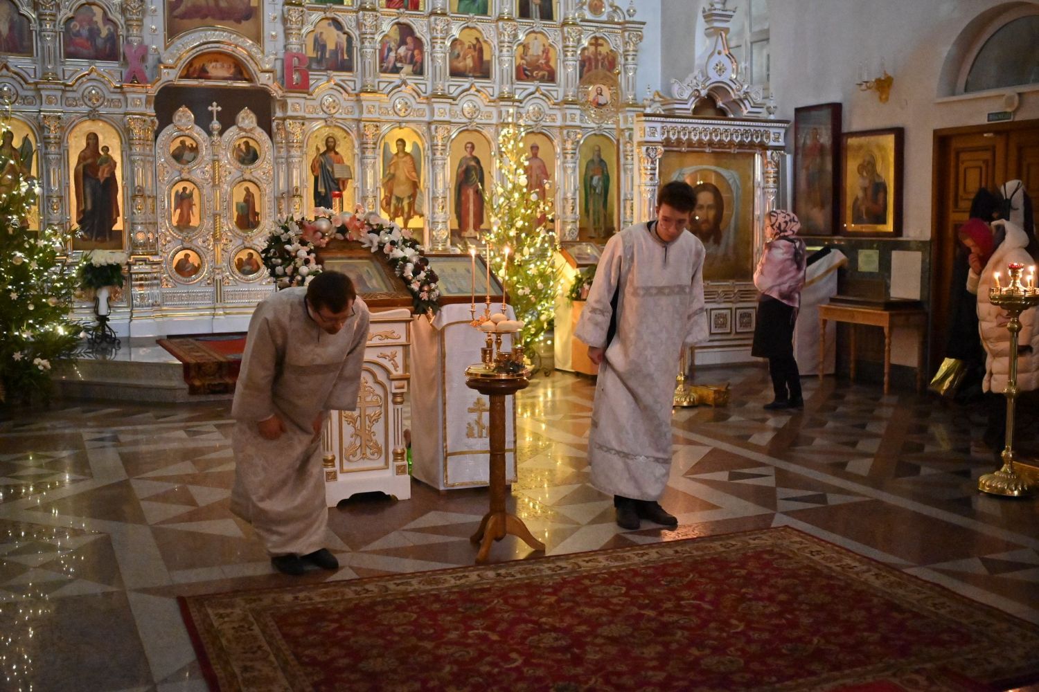 Владыке сослужили настоятель собора иерей Андрей Кочаков, клирики собора иерей Леонид Вылекжанин, иерей Димитрий Лукьянов и диакон Алексий Кузнецов, а также протодиакон Михаил Козловский. Песнопения исполнял хор собора под управлением Елены Поглазовой.