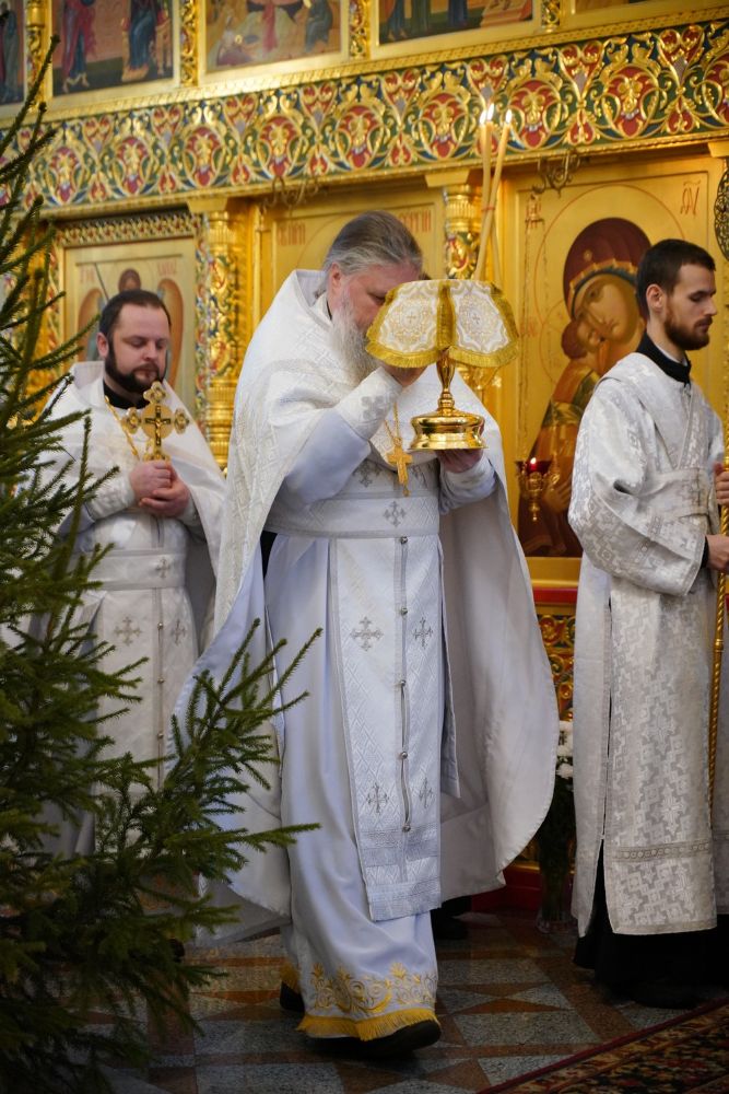 «Вот, возлюбленные братья и сестры, и наступило отдание Рождества Христова. В духовном ликовании и радости каждый из нас встретил Богомладенца Христа и сподобился Его неизреченной милости – Он в святую ночь родился в нашем сердце, обновив все наше духовное существо, – отметил владыка. – Но ведь рождение Богомладенца совершается в храмах за каждой Божественной литургией во время проскомидии. Вся земная жизнь Спасителя от рождения до крестной смерти и светоносного Воскресения проходит перед нашими духовными очами во время богослужения. Господь сподобляет нас соединиться с Ним в таинстве Святого Причащения, Он всегда с нами, Он руководит всей нашей жизнью. Только мы с вами должны понимать, что быть с Богом возможно только тогда, когда мы будем жить в любви к окружающим людям и отдавать свою волю в руки Господни, всегда благодаря Его и за радость, и за скорбь, помня, что Господь ведет каждого из нас одним-единственным путем ко спасению».