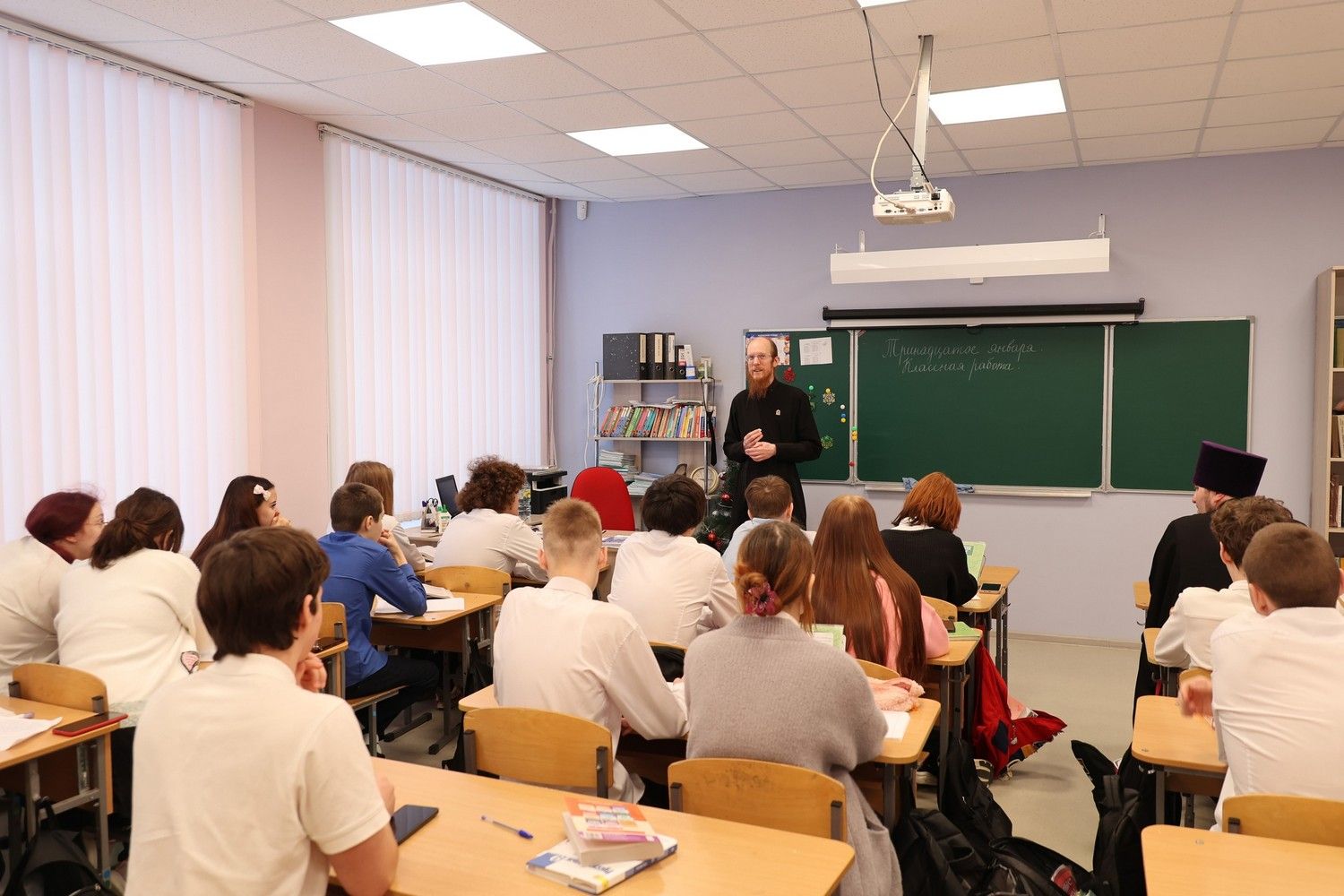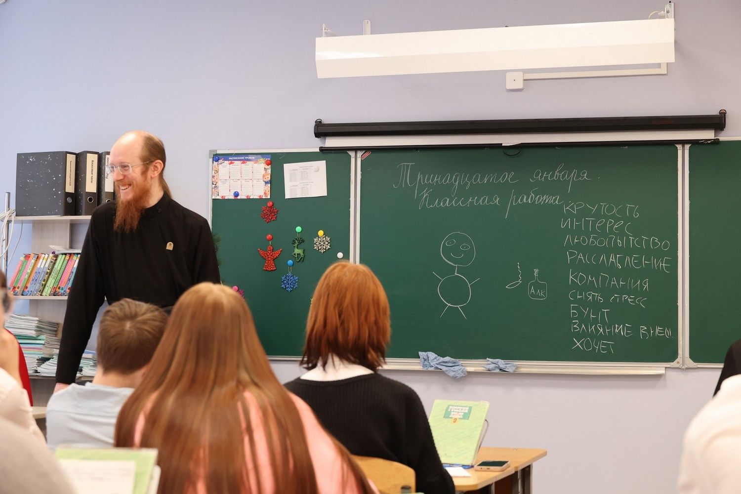 Утром 14 января диакон Иоанн Клименко встретился с первоклассниками Волжского городского лицея. Здесь отец Иоанн провел урок трезвости. Затем лектор побеседовал с учениками второго класса на тему «Игры реальные и компьютерные: сходства и различия».