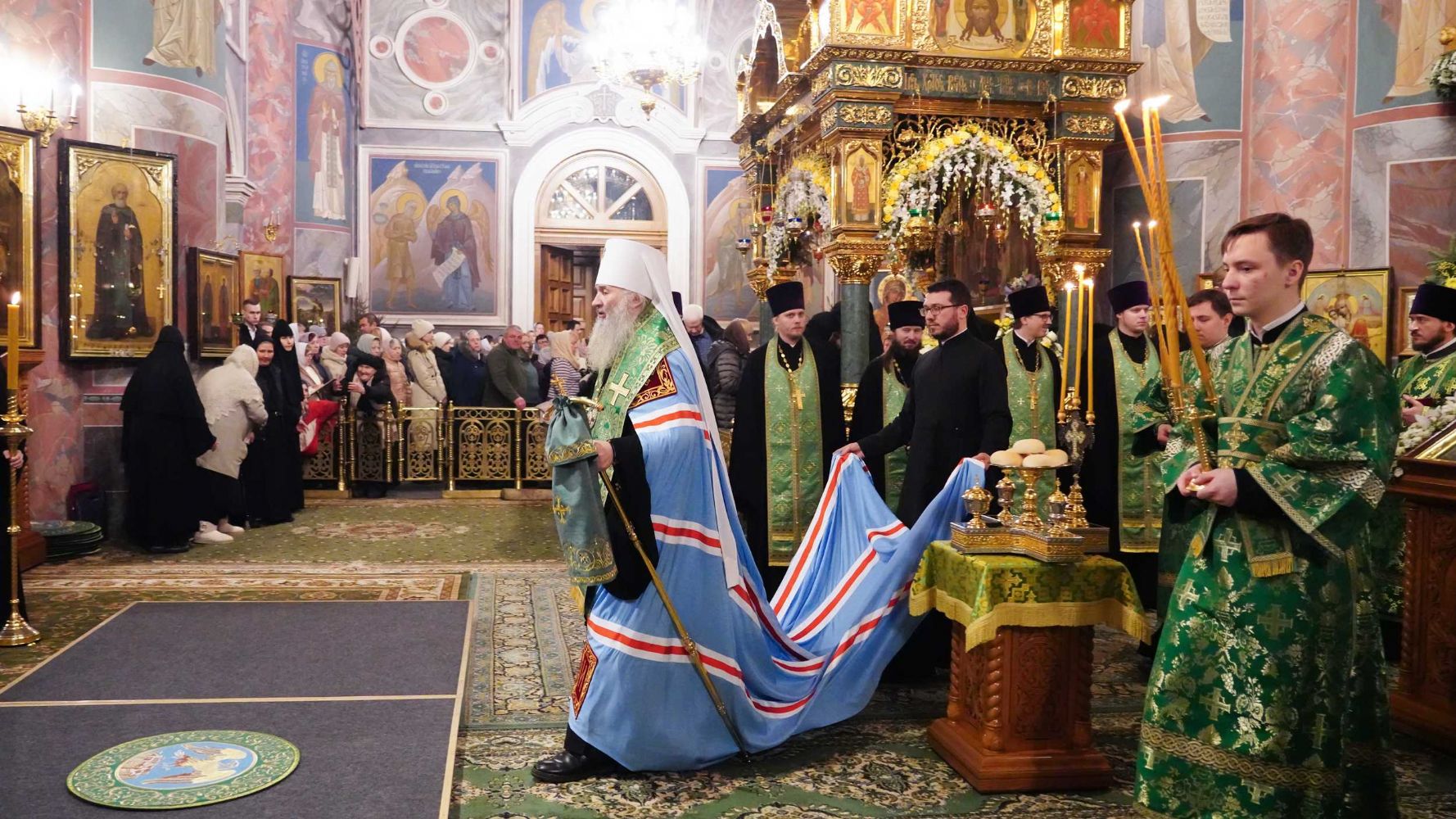Богослужение возглавил митрополит Нижегородский и Арзамасский Георгий. Ему сослужили митрополит Йошкар-Олинский и Марийский Иоанн, митрополит Саранский и Мордовский Зиновий, митрополит Пензенский и Нижнеломовский Серафим, архиепископ Витебский и Оршанский Димитрий, епископ Краснослободский и Темниковский Климент, викарий Нижегородской епархии епископ Балахнинский Илия, епископ Канашский и Беловолжский Стефан, епископ Карасукский и Ордынский Варнава, епископ Выксунский и Павловский Гедеон, епископ Сердобский и Спасский Митрофан, епископ Ардатовский и Атяшевский Мелетий, епископ Щигровский и Мантуровский Феогност, епископ Алапаевский и Ирбитский Сергий, а также духовенство Нижегородской митрополии.