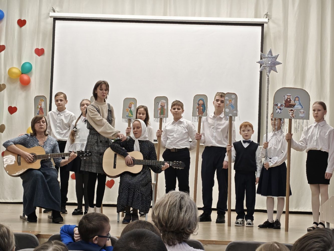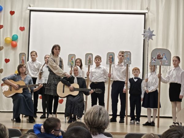 Дети совместно со взрослыми подготовили для учащихся и педагогов школы-интерната замечательный рождественский концерт: исполняли праздничные песни и колядки, рассказывали стихотворения, играли на музыкальных инструментах. А также провели увлекательную игру, в которой ребята с удовольствием поучаствовали.