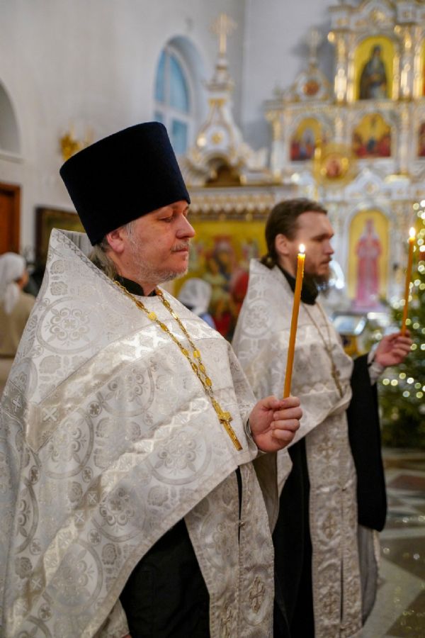 14 января в Троицком соборе Свято-Троицкого Серафимо-Дивеевского женского монастыря было совершено вечернее богослужение: малая вечерня с акафистом преподобному Серафиму Саровскому и всенощное бдение.