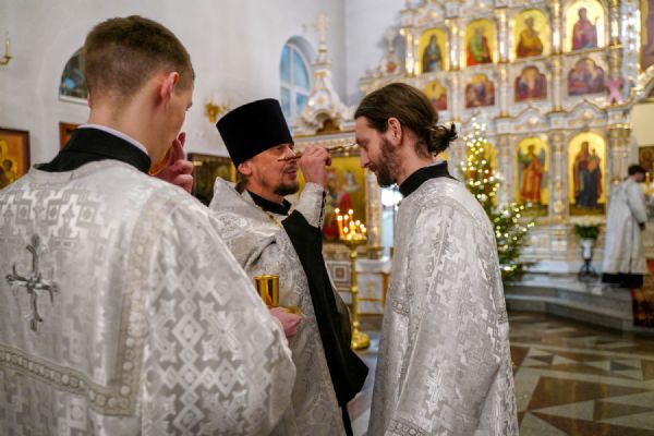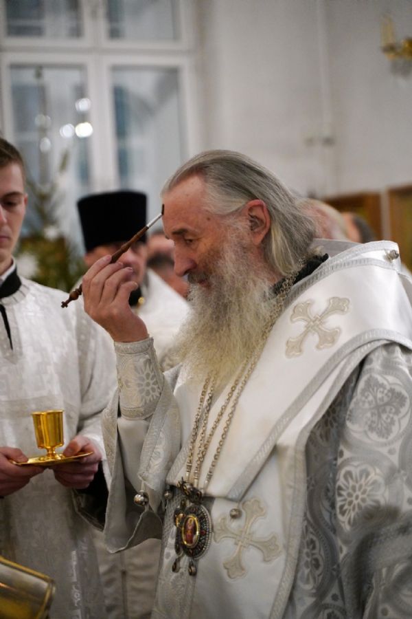 13 января вечером, в канун праздника Обрезания Господня, дня памяти святителя Василия Великого, митрополит Йошкар-Олинский и Марийский Иоанн возглавил всенощное бдение в Воскресенском соборе г. Йошкар-Олы.