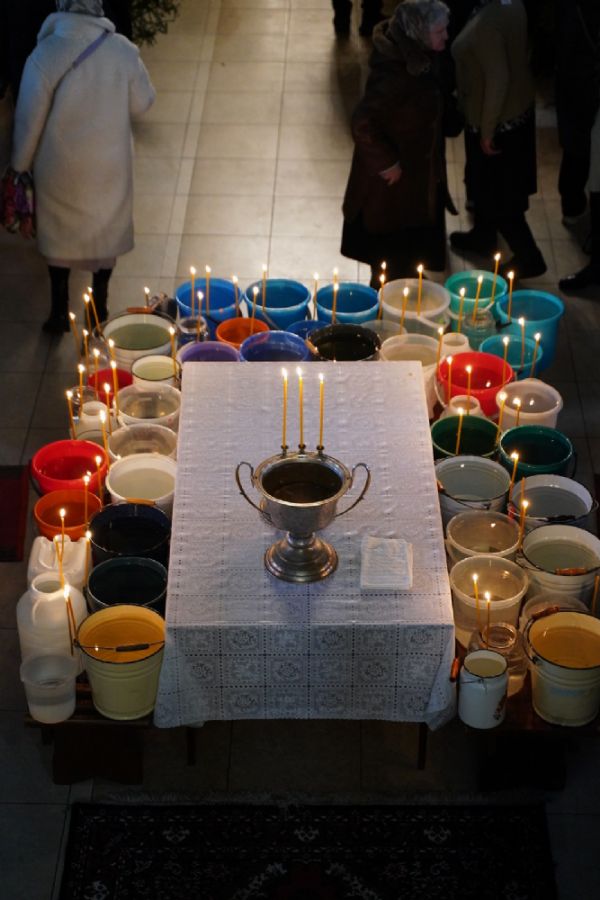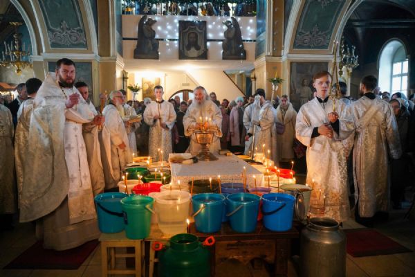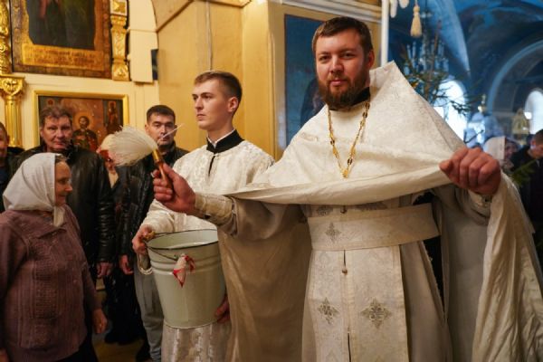 В нынешнем году Крещенский сочельник совпал с воскресным днем – и за богослужением вначале была совершена Литургия Иоанна Златоуста, потом уже Крещенская вечерня, а после нее великое водоосвящение. Некоторые спрашивают – ведь Господь однажды крестился и освятил воды, а почему мы каждый год, даже два дня подряд совершаем чин великого освящения воды? Да потому, что каждый человек вновь и вновь впадает в безумные грехи, а природа стенает и мучится от грехов человеческих. А когда освящается водная стихия, а затем окропляется все живущее, то вся природа освобождается от греховного безумия человечества, все освящается, возобновляется в богозданном виде.